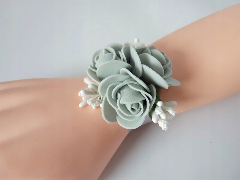 * trzech szarych piankowych różyczek o średnicy ok. 3cm,