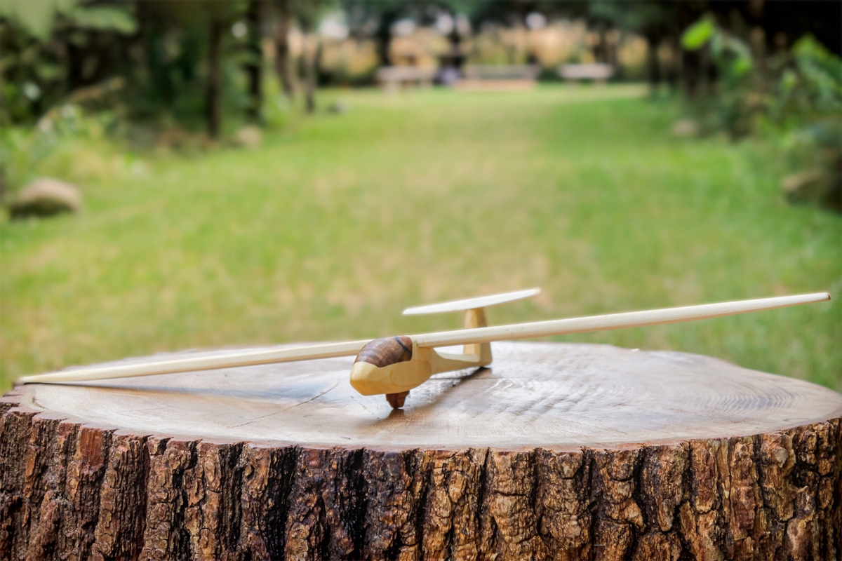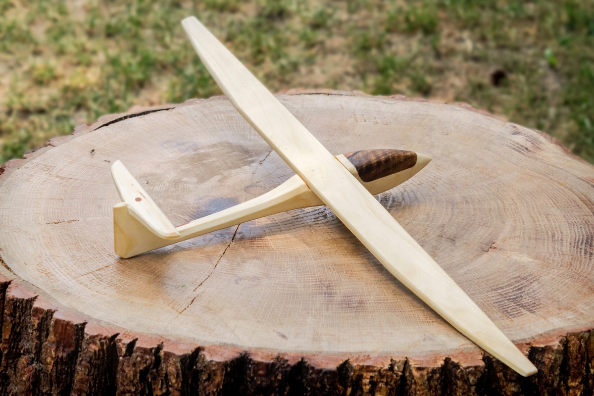 Модель самолета изготовлена вручную из дерева-с точностью и вниманием к деталям. Игрушка стилизован под классический учебный планер.