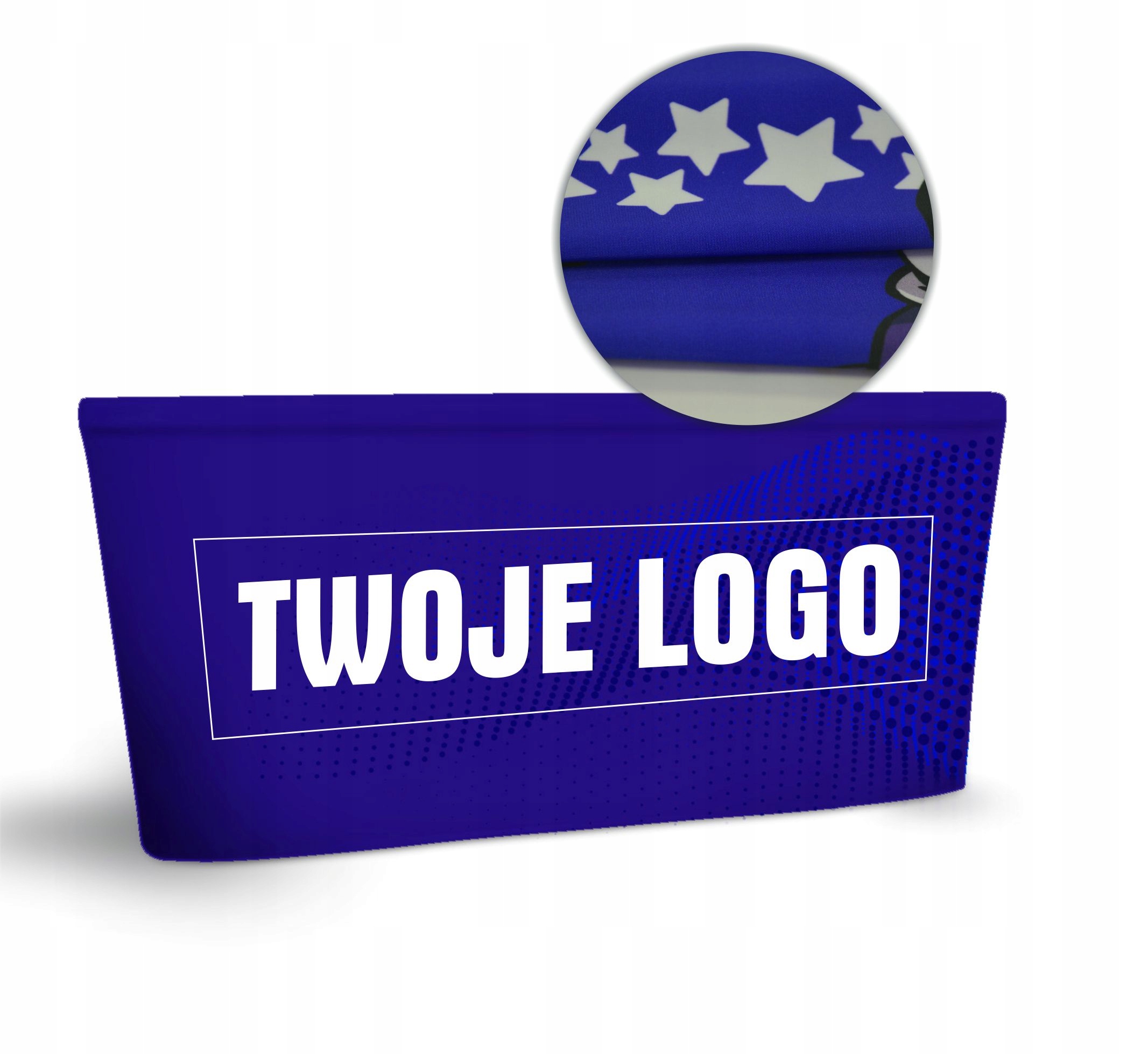 Obrus z logo firmy pozwoli jeszcze bardziej spersonalizować aranżację wnętrza i skutecznie promować przedsiębiorstwo.