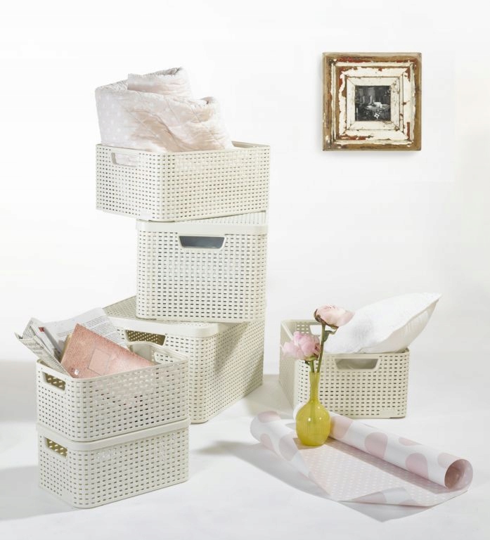 Łączy w sobie wizualne i praktyczne zalety. Koszyki, w przeciwieństwie do tych rattanowych, nie haczą przechowywanych w nich przedmiotów.