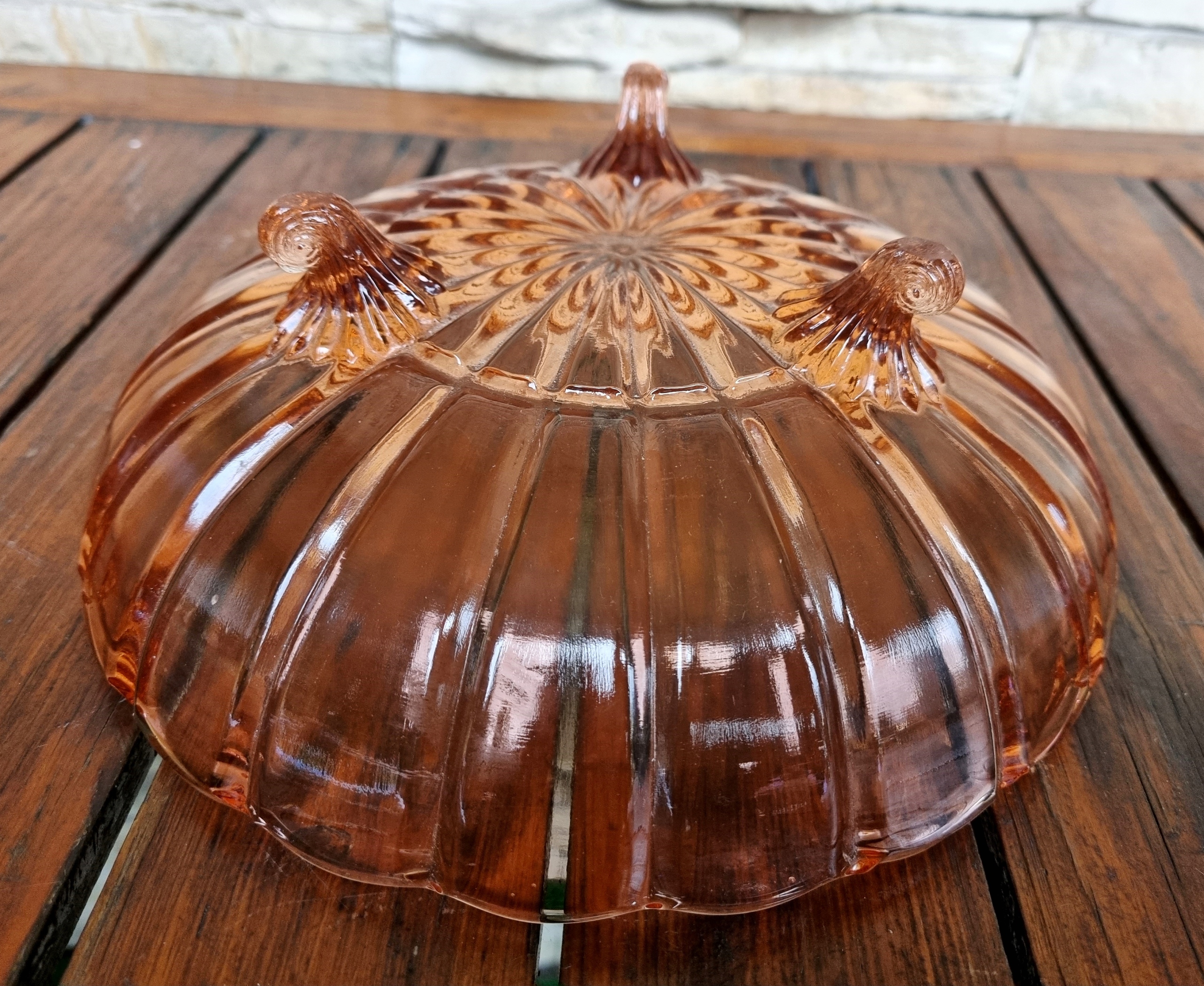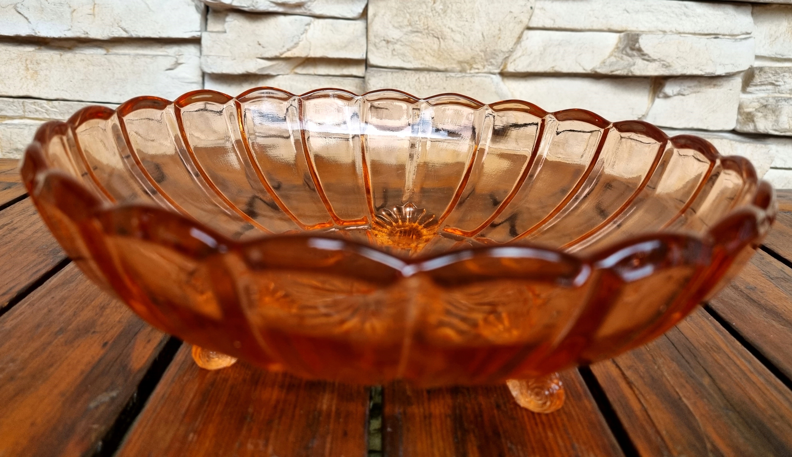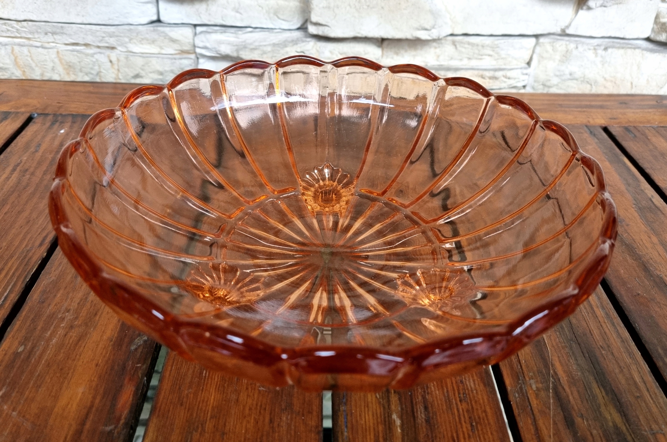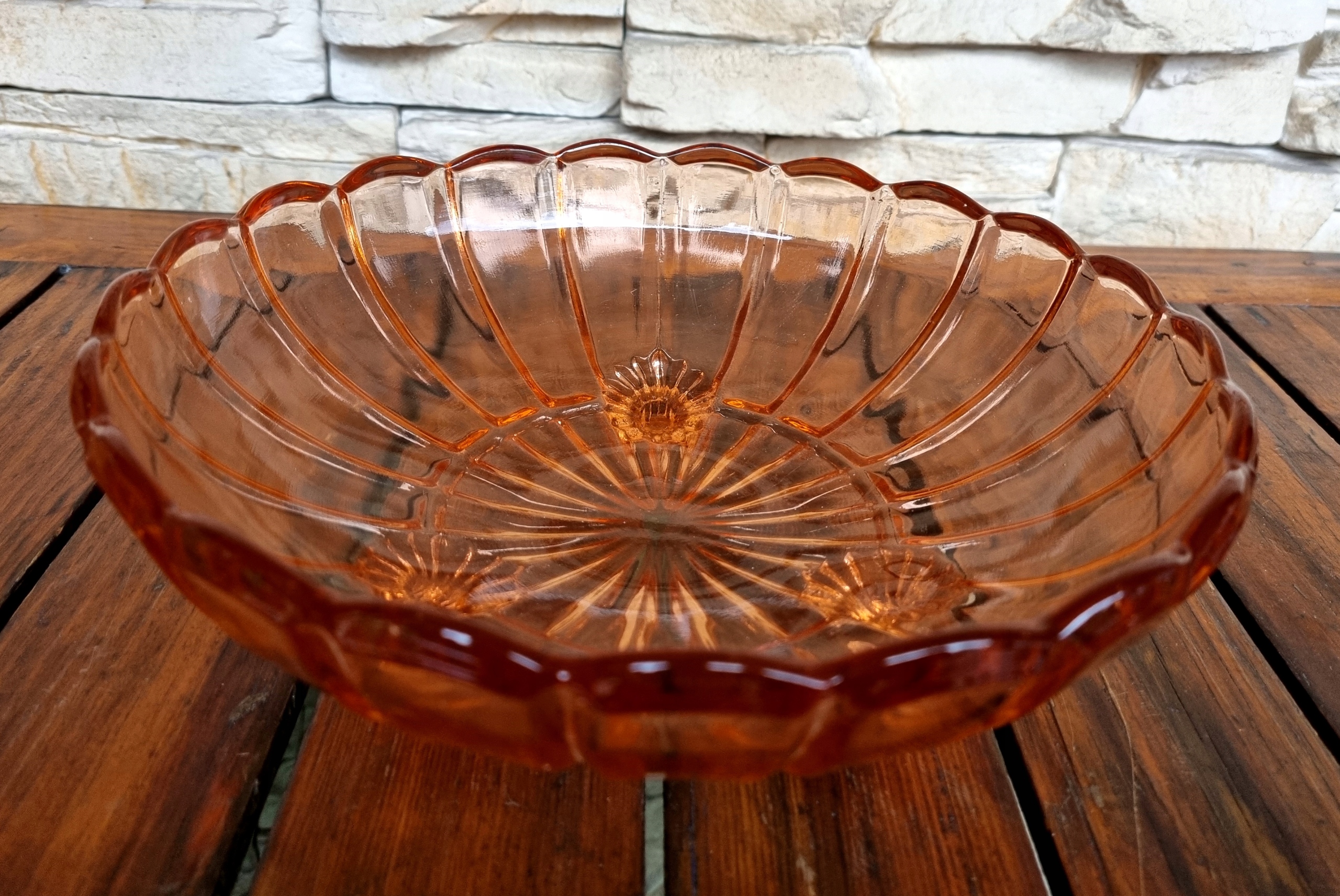 Предметом аукциона является чаша из прессованного стекла, окрашенная в цветную массу лососевым.