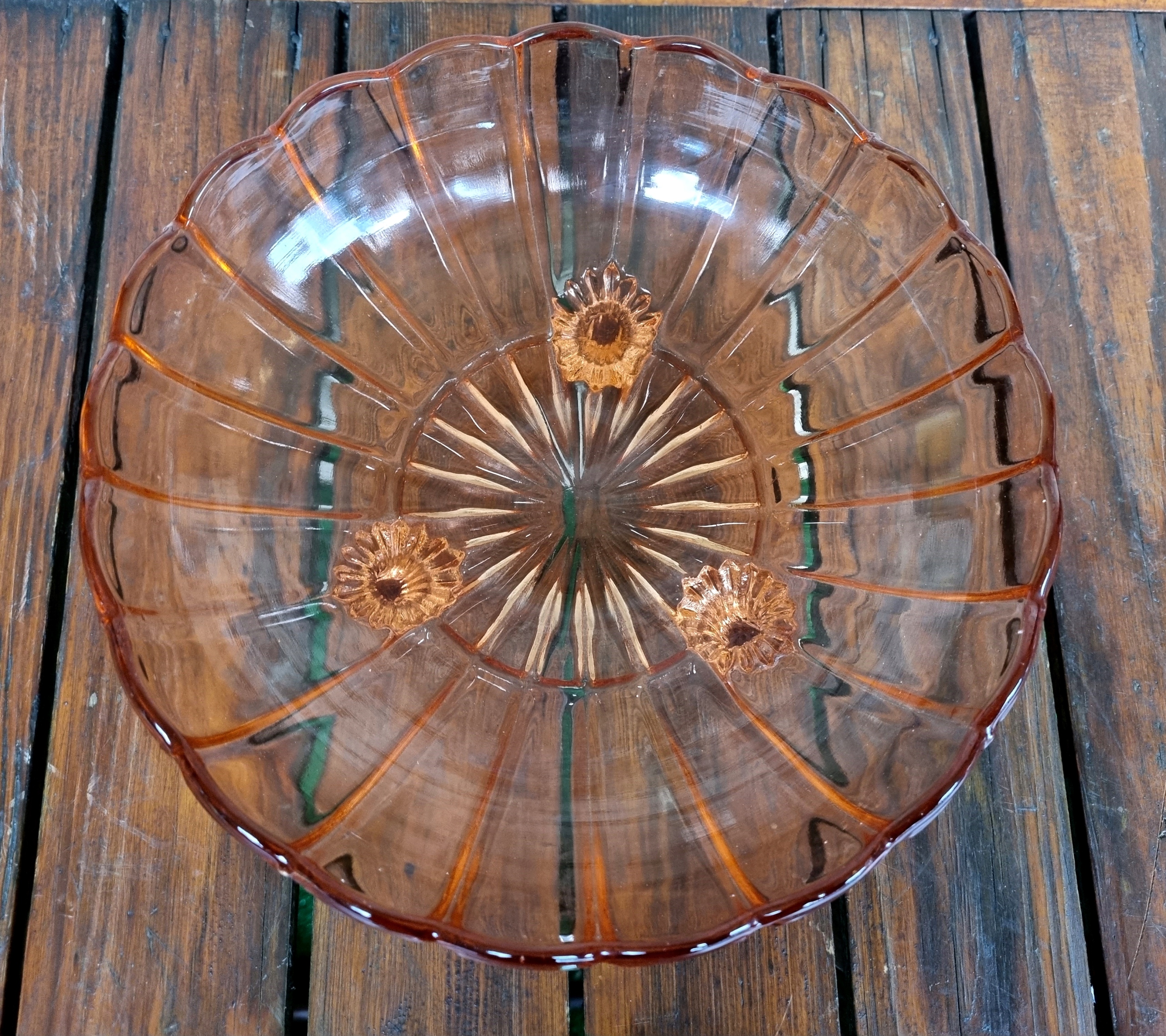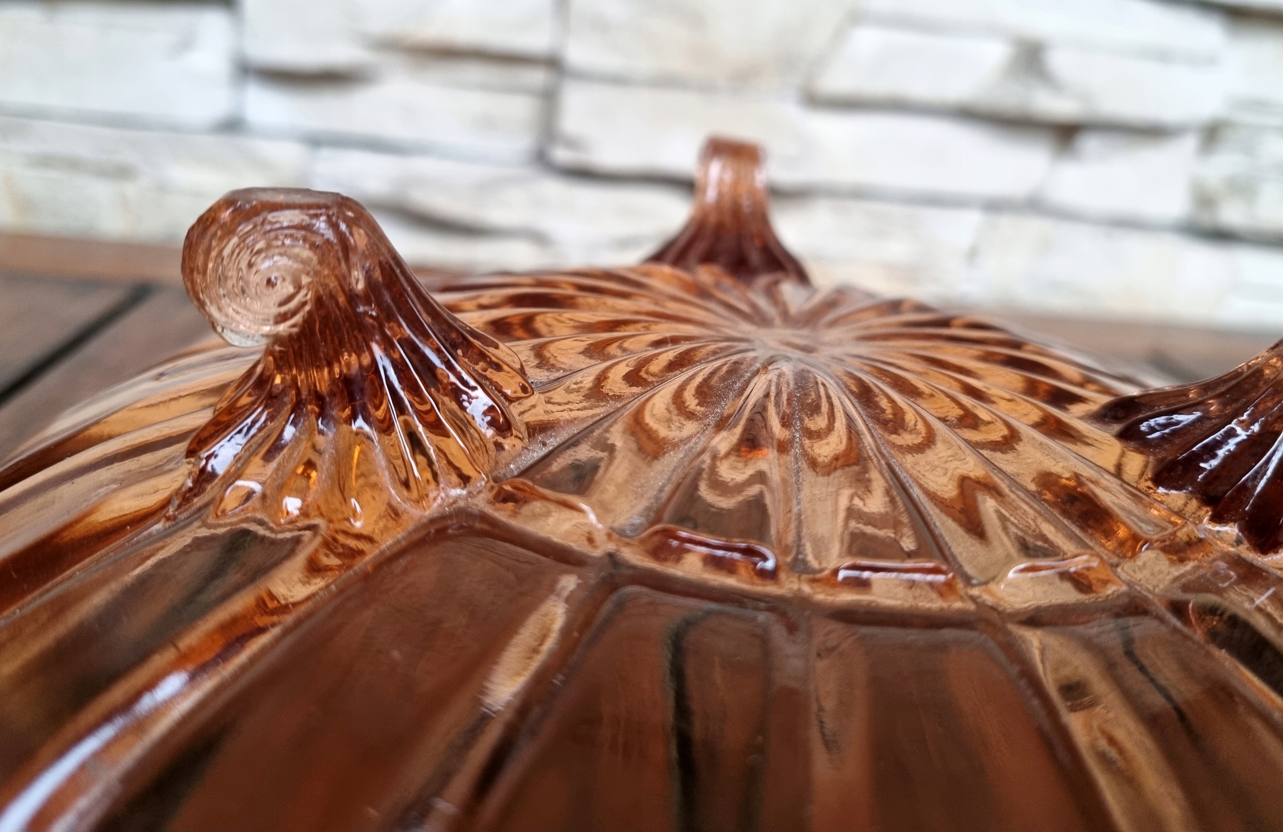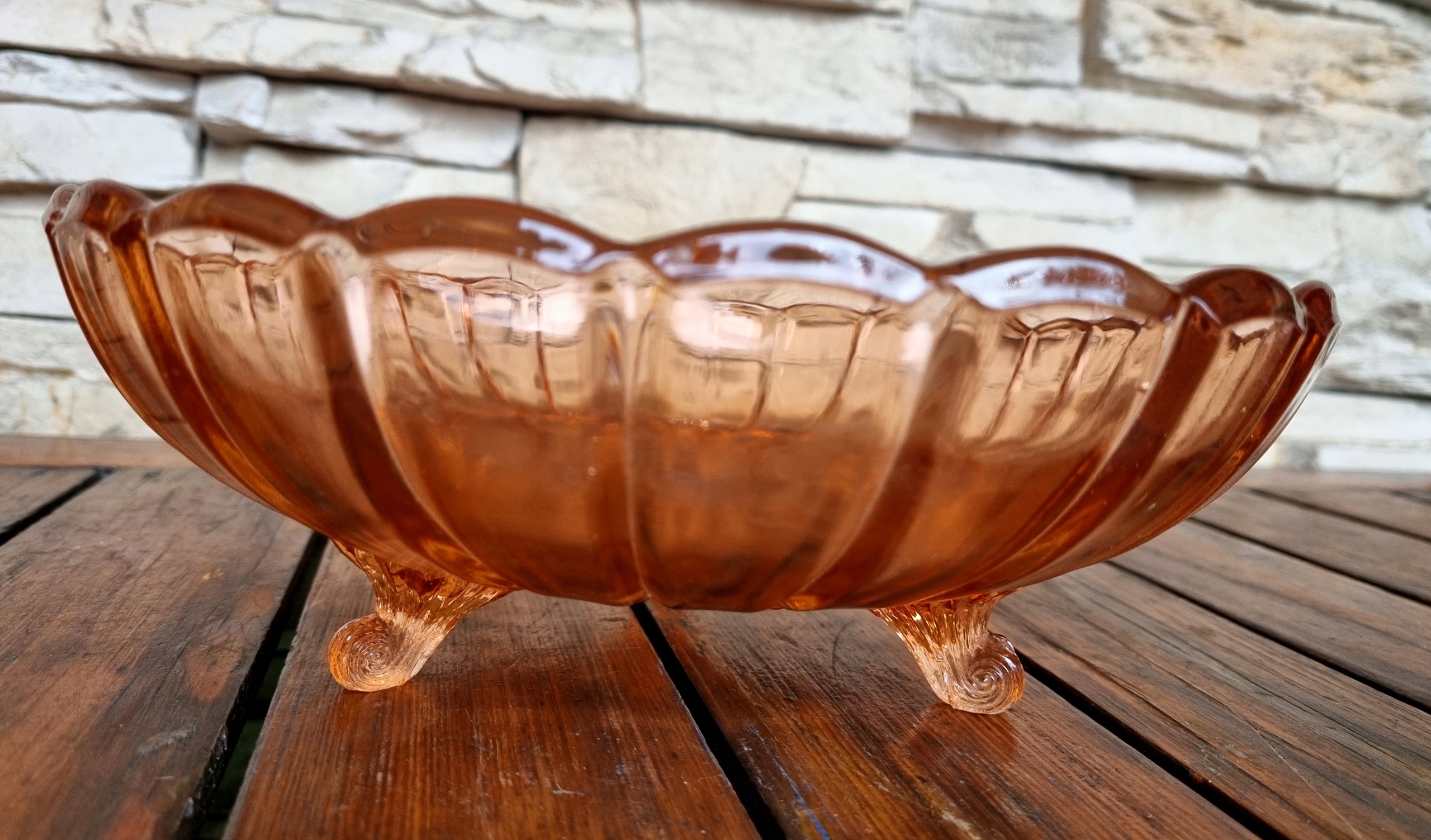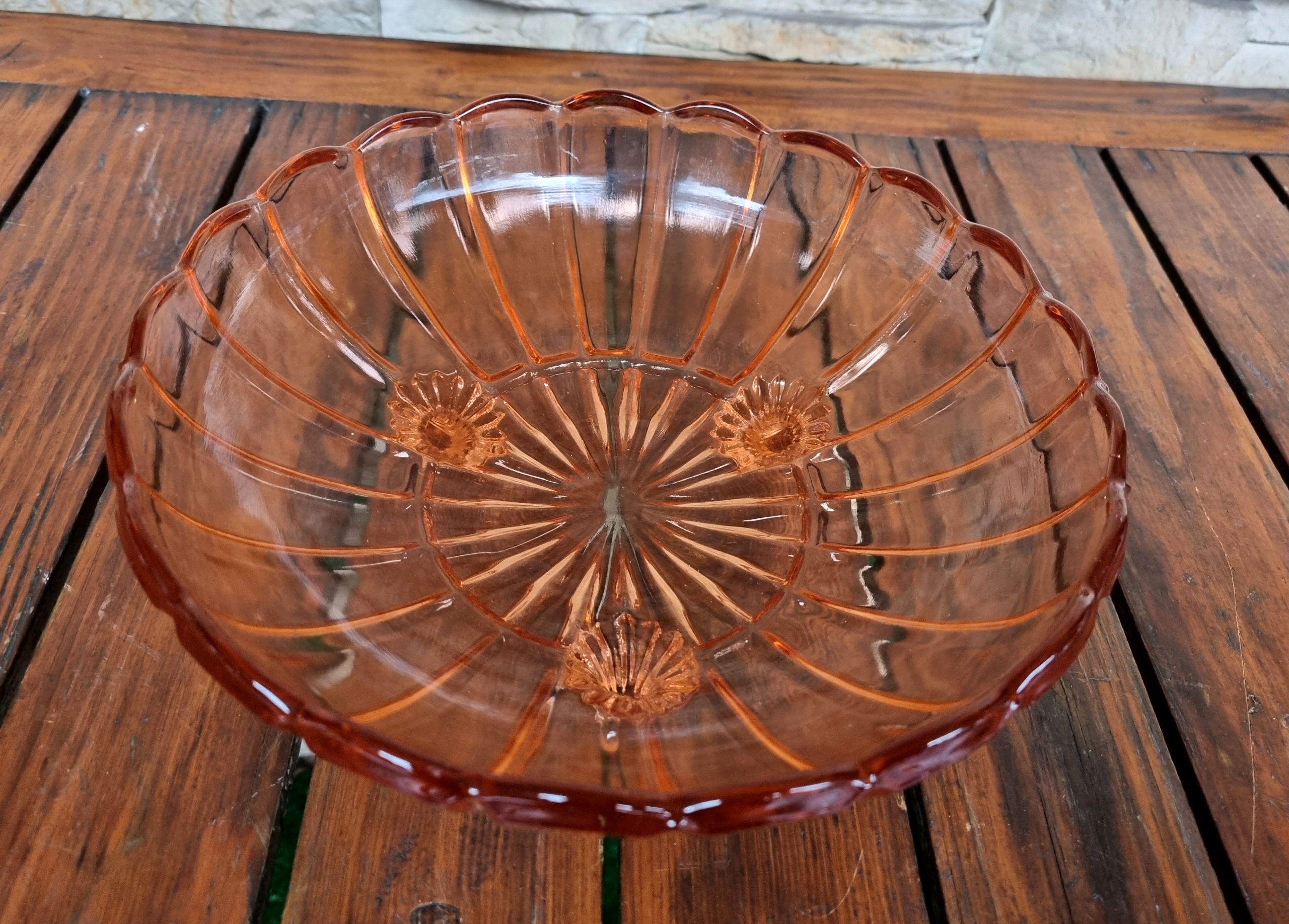 Предметом аукциона является чаша из прессованного стекла, окрашенная в цветную массу лососевым.