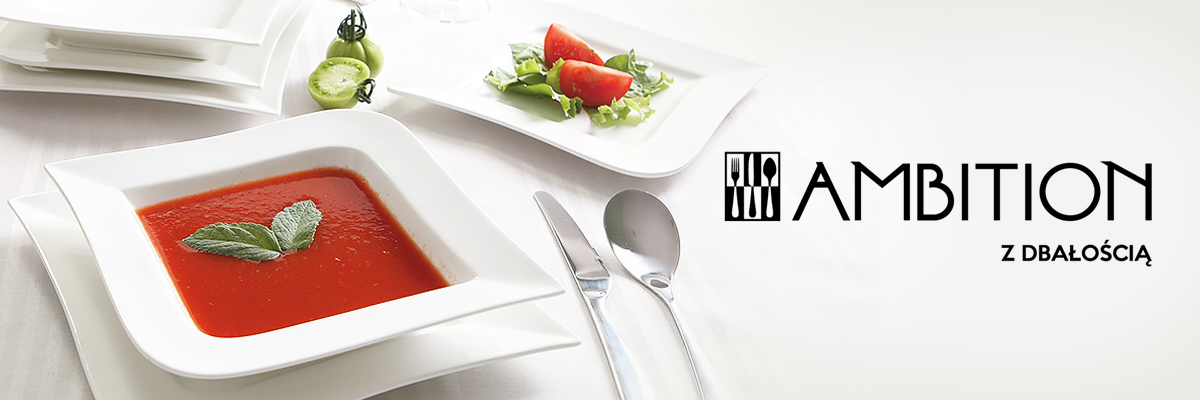 Ambition to zarówno klasyka jak i innowacja. Propozycja dla wielbicieli niebanalnego wzornictwa. To wzory z jednej strony ambitne, z drugiej bezpieczne, bo odnajdujące się w każdym wnętrzu. Każdy znajdzie tu coś dla siebie. Wyraźnie widoczna dynamika i ambicja to odzwierciedlenie pasji do gotowania, którą twórcy marki chcą zarażać swoich klientów.