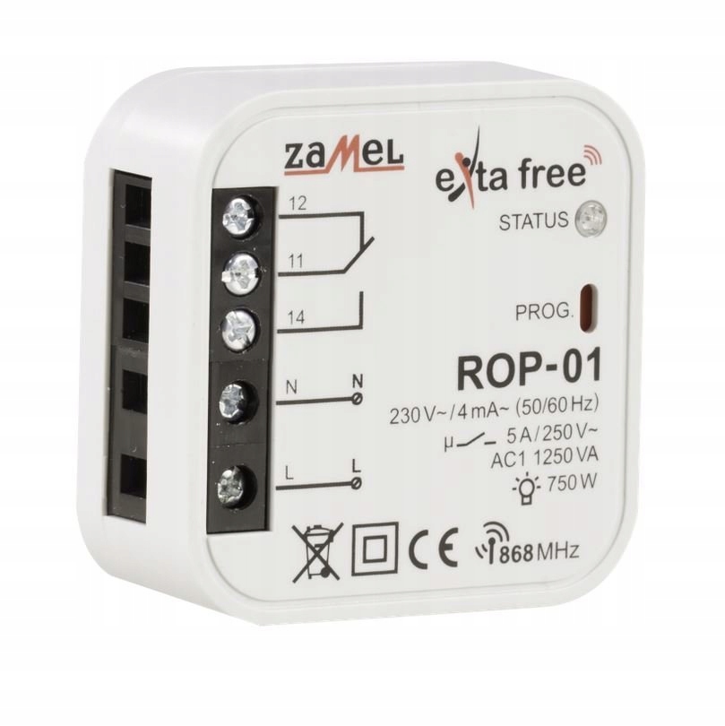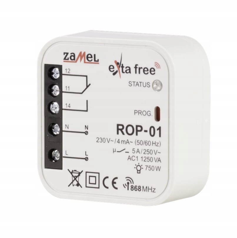 Radiowe odbiorniki dopuszkowe znajdują zastosowanie zarówno jako elementy do montażu w puszkach instalacyjnych pod- i natynkowych, jak i jako urządzenia wykonawcze zabudowywane bezpośrednio w obudowach opraw oświetleniowych i innych odbiorników. ROP-01 umożliwia pracę w 5 różnych trybach (załączenie, wyłączenie, tryb monostabilny, bistabilny, czasowy)