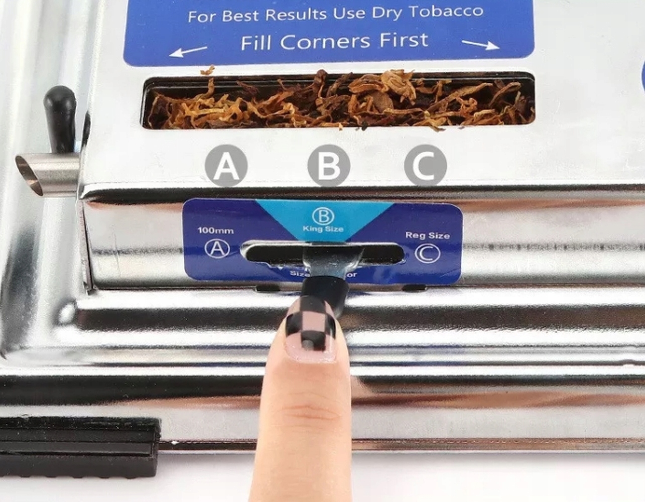 ПРОСТОТА В ЭКСПЛУАТАЦИИ / / ДЛЯ СТАНДАРТНЫЙ НАПЕРСТОК 8 ММ / | НЕРЖАВЕЮЩАЯ СТАЛЬ| / РЕГУЛИРОВКА ПЛОТНОСТИ ЗАПОЛНЕНИЯ / / 3 ДЛИНЫ ШИПОВАННЫХ СИГАРЕТ