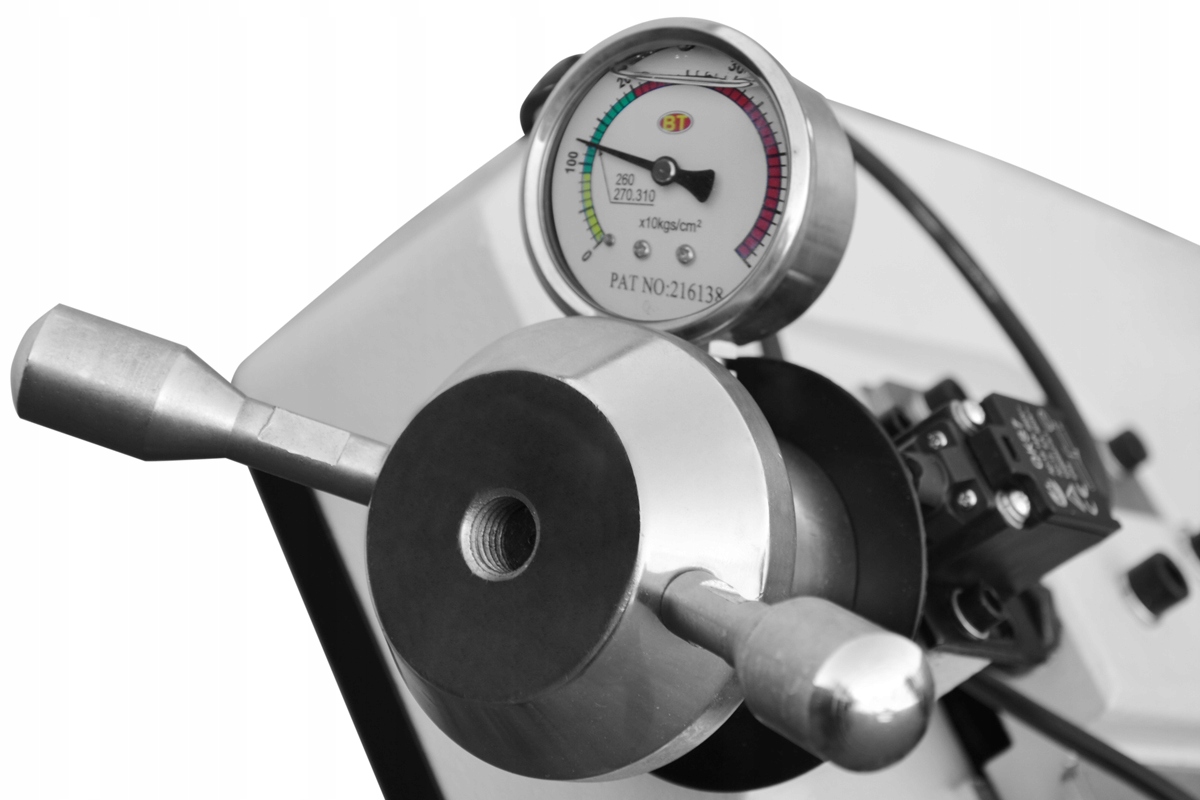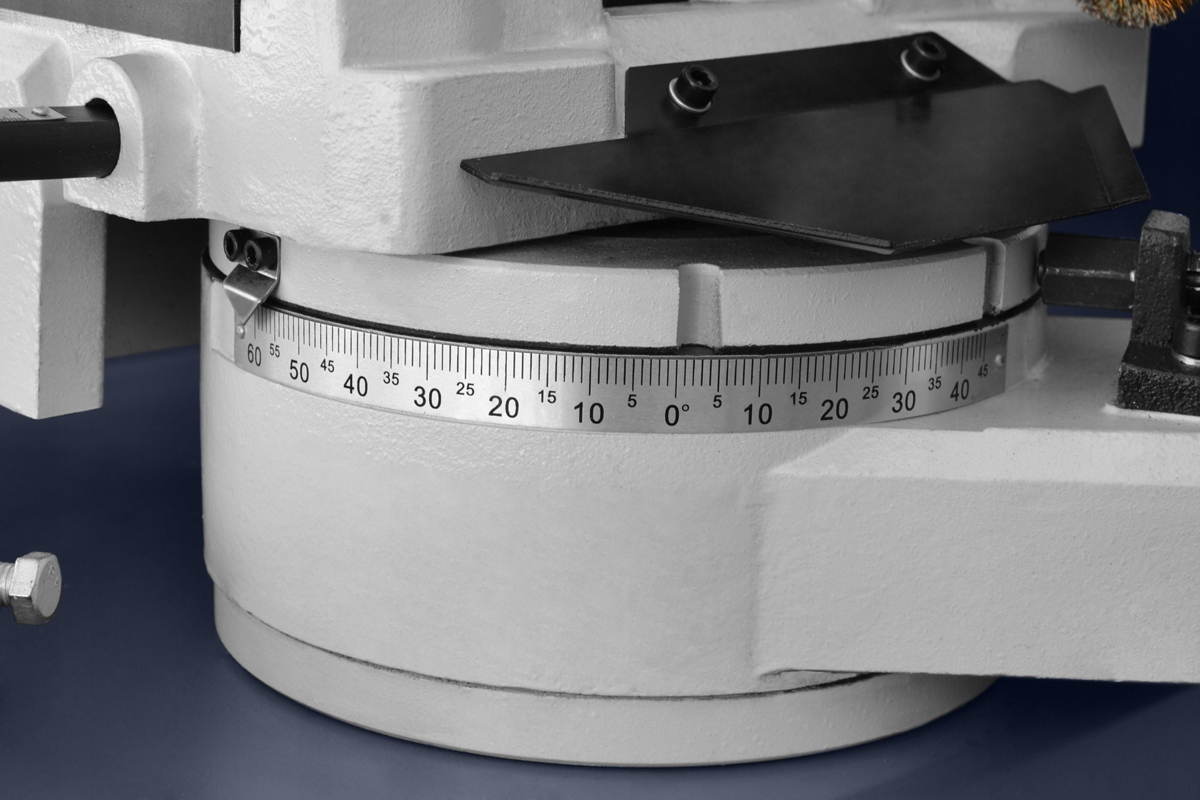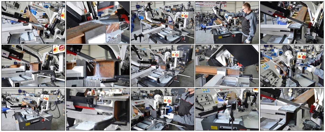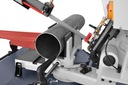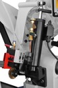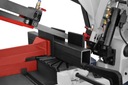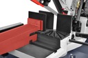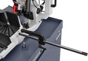 Плечо имеет автоматический датчик натяжения полотна, наклонные о 25 градусов, что увеличивает срок службы полотна. С нижней части плеча закреплена щетка для чистки для идеального пильного полотна. Привод машины осуществляется с помощью глиста. Станок имеет трехфазный двигатель с двумя обмотками и двумя скоростью резки. Тепловая защита двигателя. Машина имеет две скорости режущей ленты 35 и 70 м/мин. Разрезной станок имеет TENSOMETR ТАЙМЕР - датчик натяжения ленты и автоматический выключатель в случае разрыва режущей ленты.