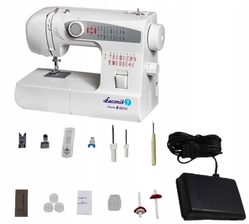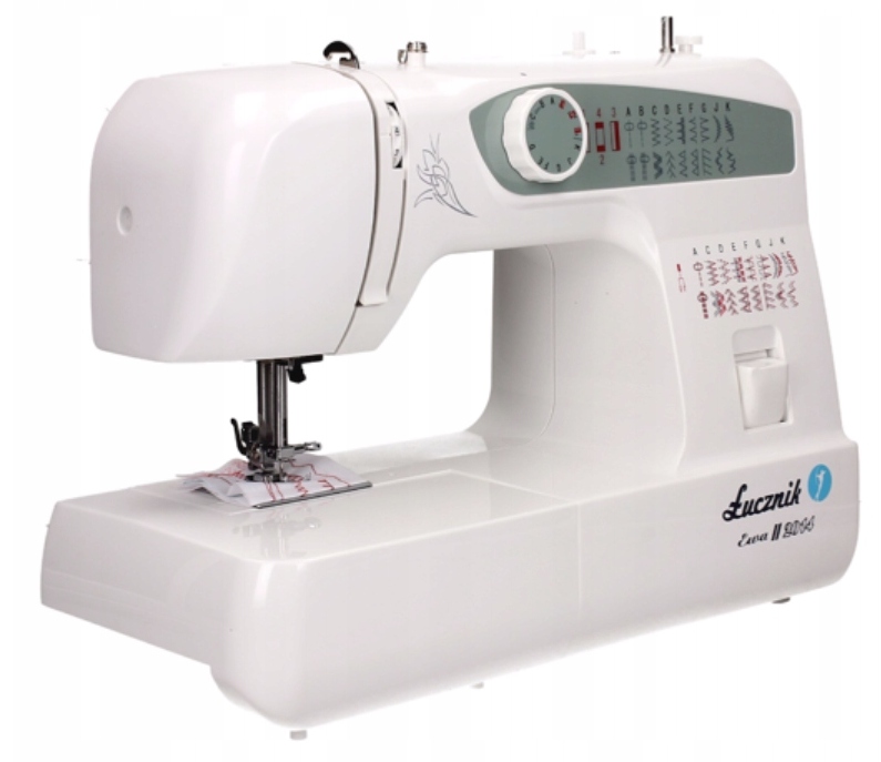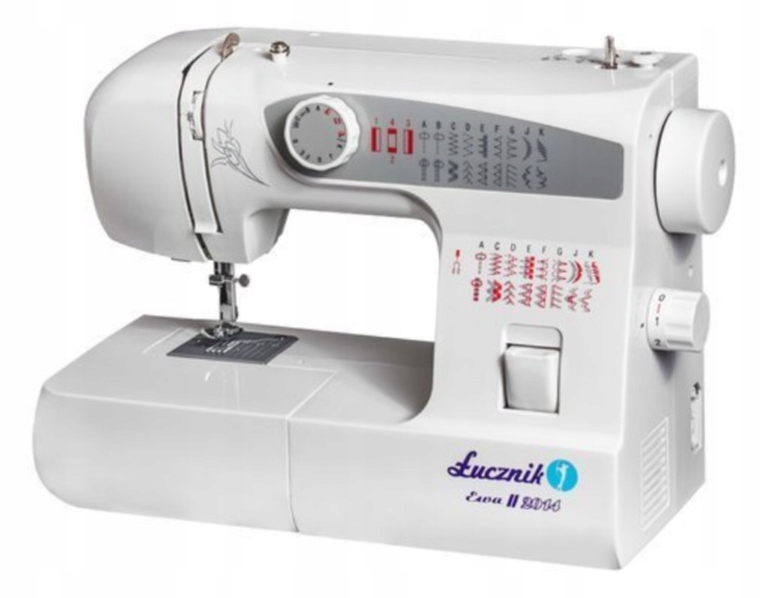 Lekki, przenośny i bardzo gustowny korpus maszyny Łucznik Ewa II 2014 kryje w sobie aż 38 programów szycia (22 programy szycia bez użycia podwójnej igły).