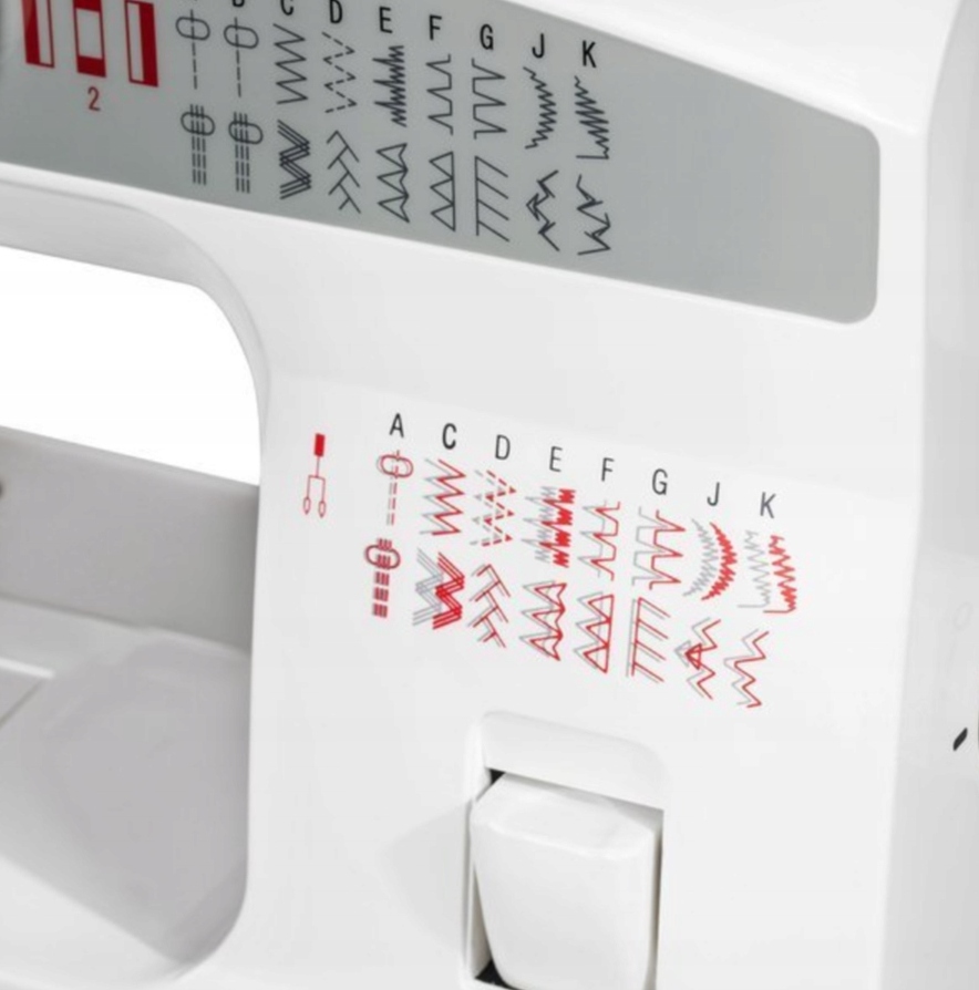 Wśród nich znajdują się ustawienia uwzględniające nie tylko ściegi podstawowe, ale także overlockowe i elastyczne, pracujące z materiałami rozciągliwymi. Długość ściegu można regulować, a przy tym zmieniać kierunek szycia. Maszyna oferuje 4-stopniowe obszywanie dziurek na guziki i opcję podszywania brzegów. Do pracy z różnym typem materiałów przyda Ci się z pewnością opcja wysokiego podnoszenia stopki, dzięki czemu swobodnie dopasujesz się do różnej grubości fabrykatu.