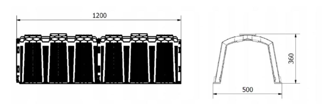 Tunele rozsączające 150, są przeznaczone do rozsączania w gruncie ścieków zawierającej zanieczyszczenia z procesów przemysłowych oraz gospodarstw domowych. Budowa tuneli, pozwala również na wykorzystanie ich do magazynowania i rozsączania wód opadowych. Tunel układamy w gruncie tworząc grawitacyjne złoża rozsączające. Na ścianach bocznych tunel posiada podłużne szczeliny, którymi ścieki jak i woda deszczowa może być rozsączana w gruncie.