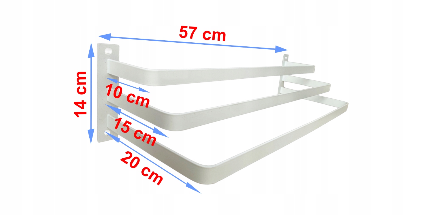 Wieszak łazienkowy, o długości 57 cm, to idealne rozwiązanie do łazienki. Wieszak wykonany jest z metalu, dzięki czemu jest bardzo wytrzymały. Posiada on 3 ramiona służące do wieszania ręczników. Wieszak pokryty jest wytrzymałą farbą proszkową. Pasuje do wielu aranżacji zarówno klasycznych jak i nowoczesnych. Wieszak jest stabilny i solidny.