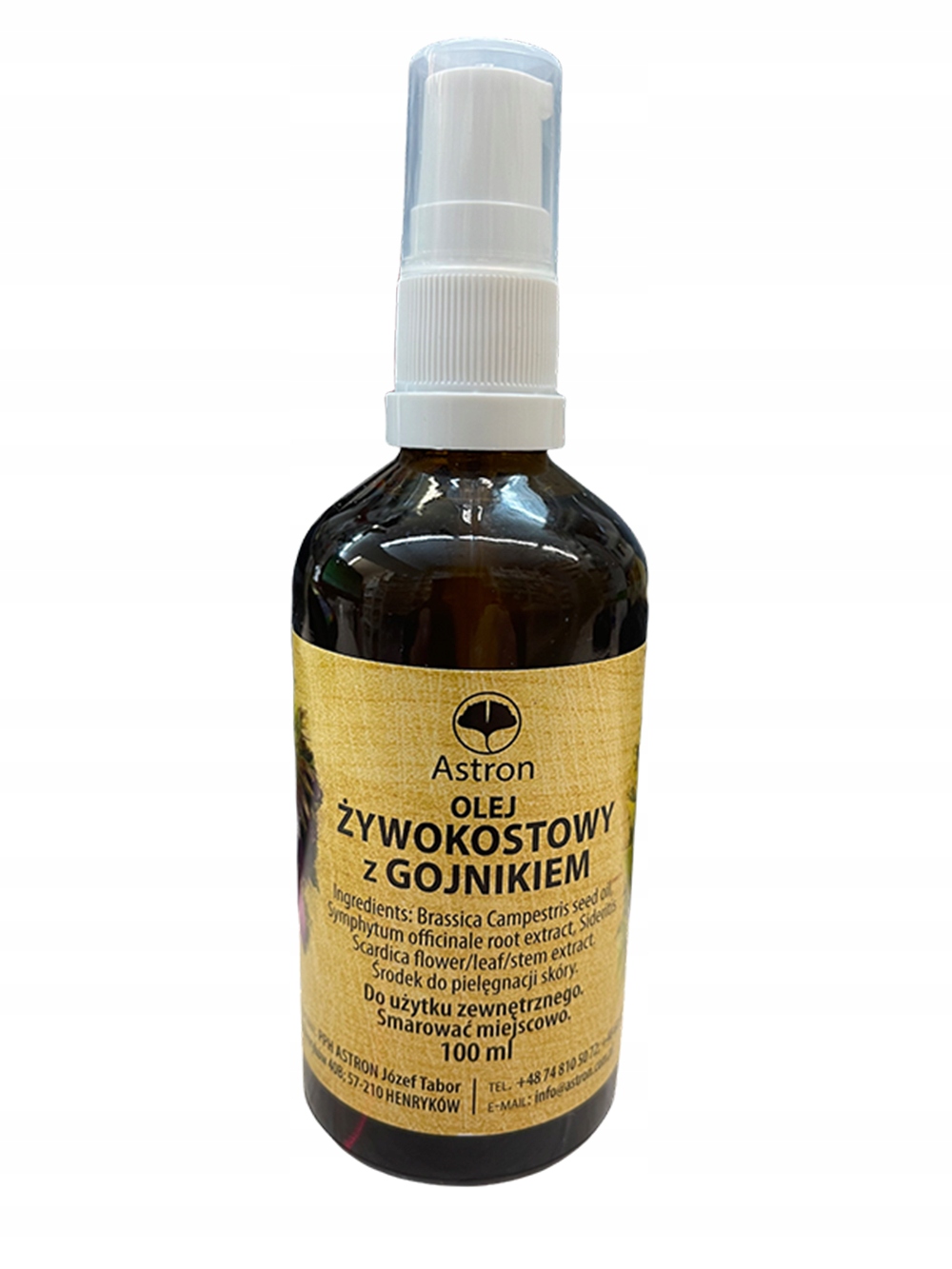 Składniki Oleju Żywokostowego Z Gojnikiem Astron 100ml: