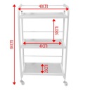 Praktyczny stolik kosmetyczny w kolorze białym na kółkach. Jest jednym z elementów podstawowego wyposażenia gabinetów kosmetycznych, gabinetów masażu, tatuażu czy salonów fryzjerskich.