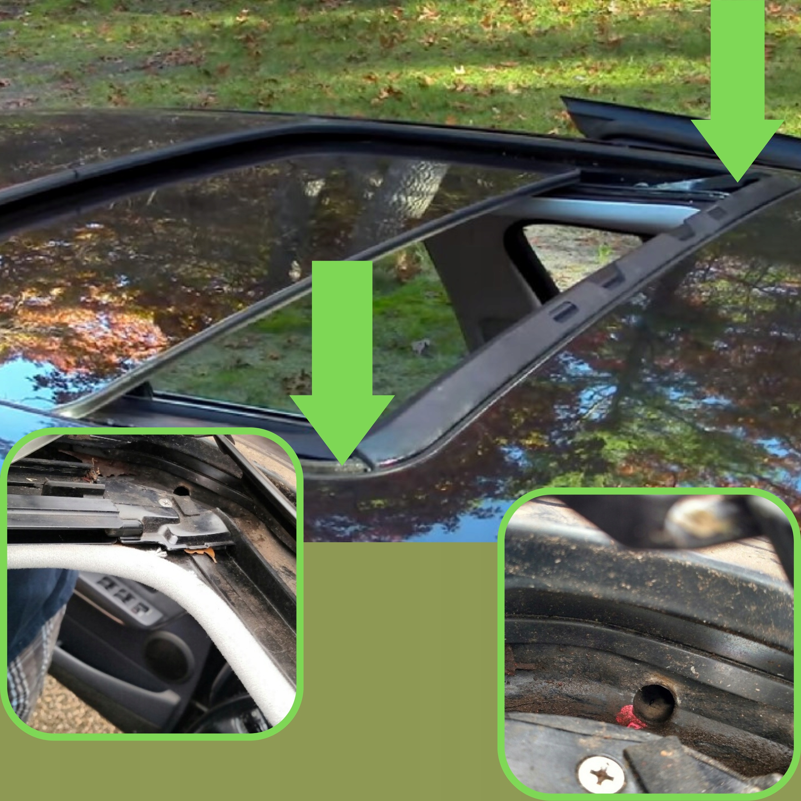 Każdy właściciel auta z szyberdachem powinien systematycznie czyścić odpływy szyberdachu , zwłaszcza w okresie jesiennym kiedy mamy duże nagromadzenie zanieczyszczeń takich jak resztki liści itp. oraz częste opady deszczu.