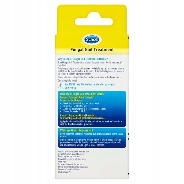 Scholl Preparat na grzybicę paznokci to unikalny preparat, którego skuteczność została potwierdzona naukowo. Preparat jest dyskretny i łatwy w użyciu, a jego specjalnie opracowana receptura penetruje paznokieć' by zniszczyć grzybicę paznokci w miejscu ich powstawania. Preparat pomaga zapobiegać rozprzestrzenianiu się infekcji oraz chroni przed nawrotami zakażenia. Jest dostępny bez recepty, wydajny i może być stosowany do samodzielnej terapii w domu. Testowany dermatologicznie.