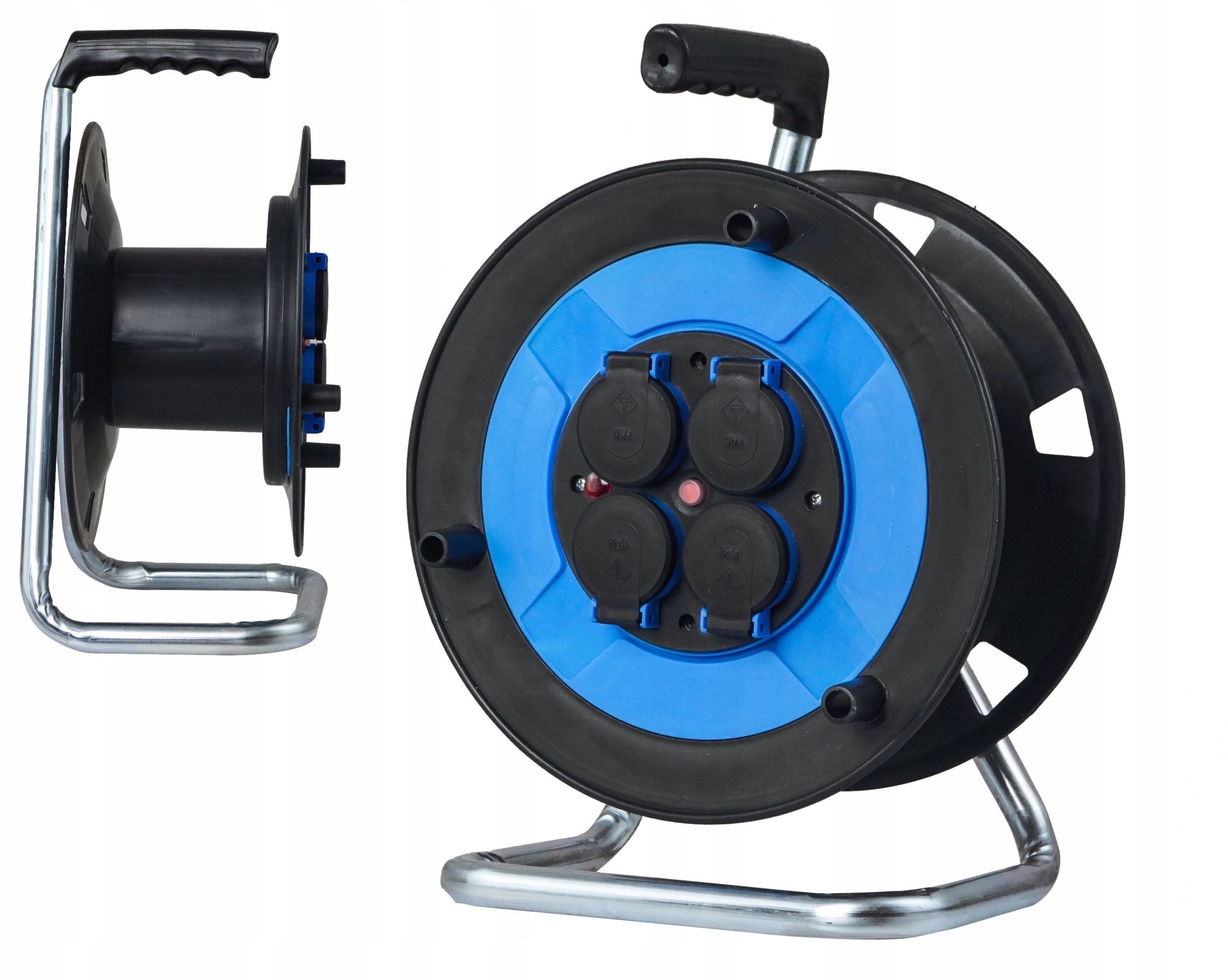 Ergonomiczny uchwyt - gumowana rączka, ułatwia korzystanie z bębna przy rozwijaniu i zwijaniu przewodu, a także przy jego przenoszeniu.