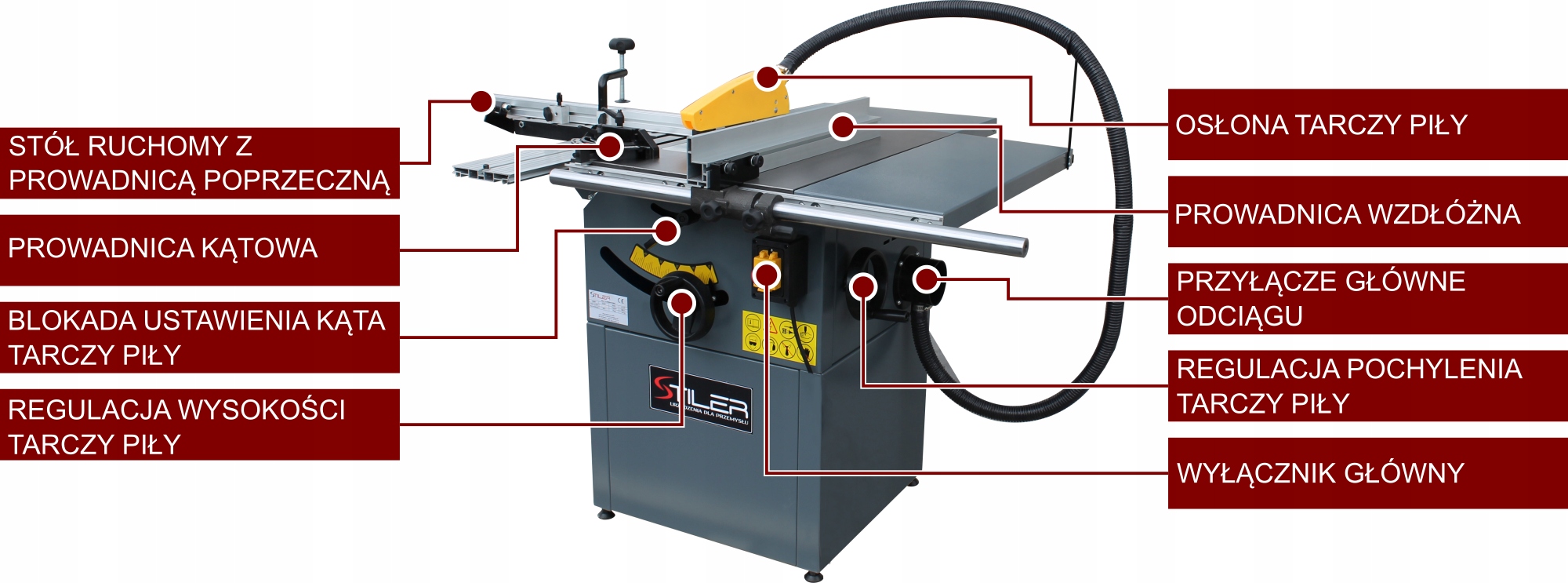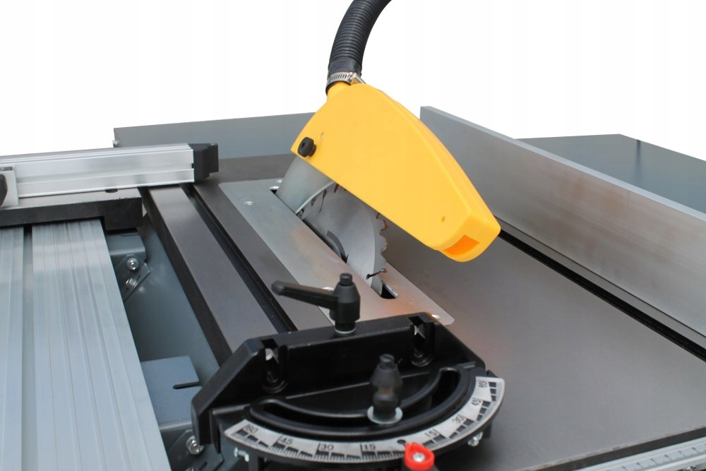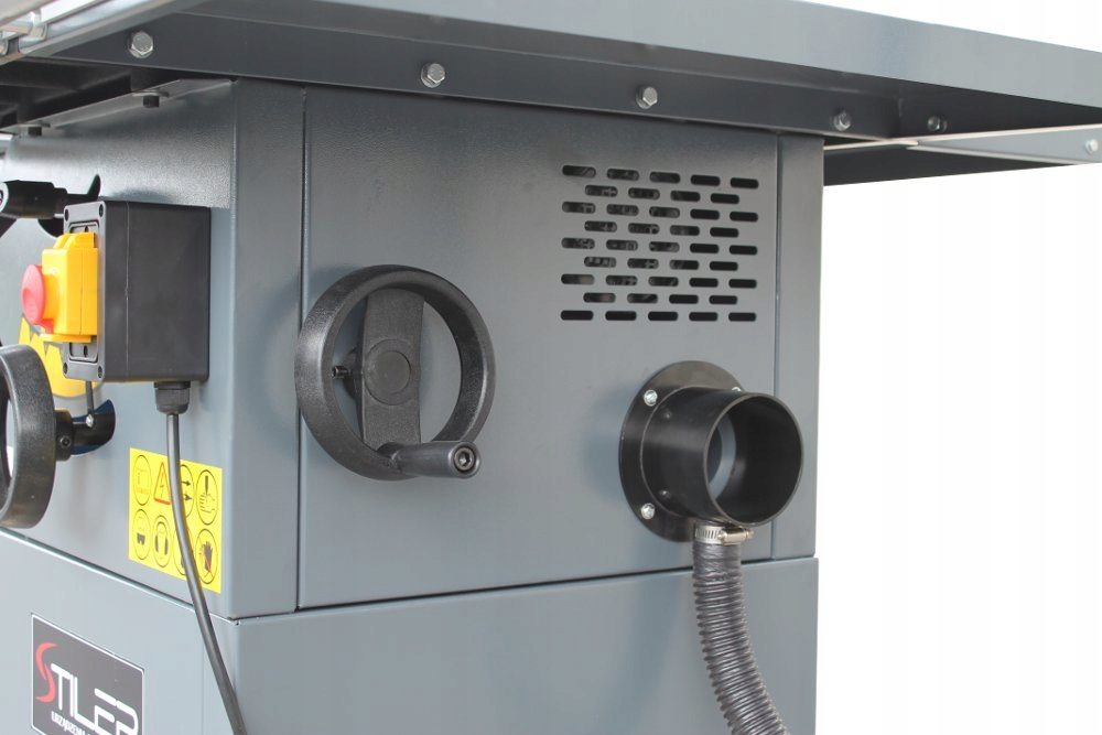 ✅ Pilarka posiada osłonę tarczy piły, która dodatkowo może zostać podłączona do odciągu. Dużym plusem jest demontowalny metalowy blat który sprawia, że wymiana tarczy tnącej jest szybka i bezproblemowa.