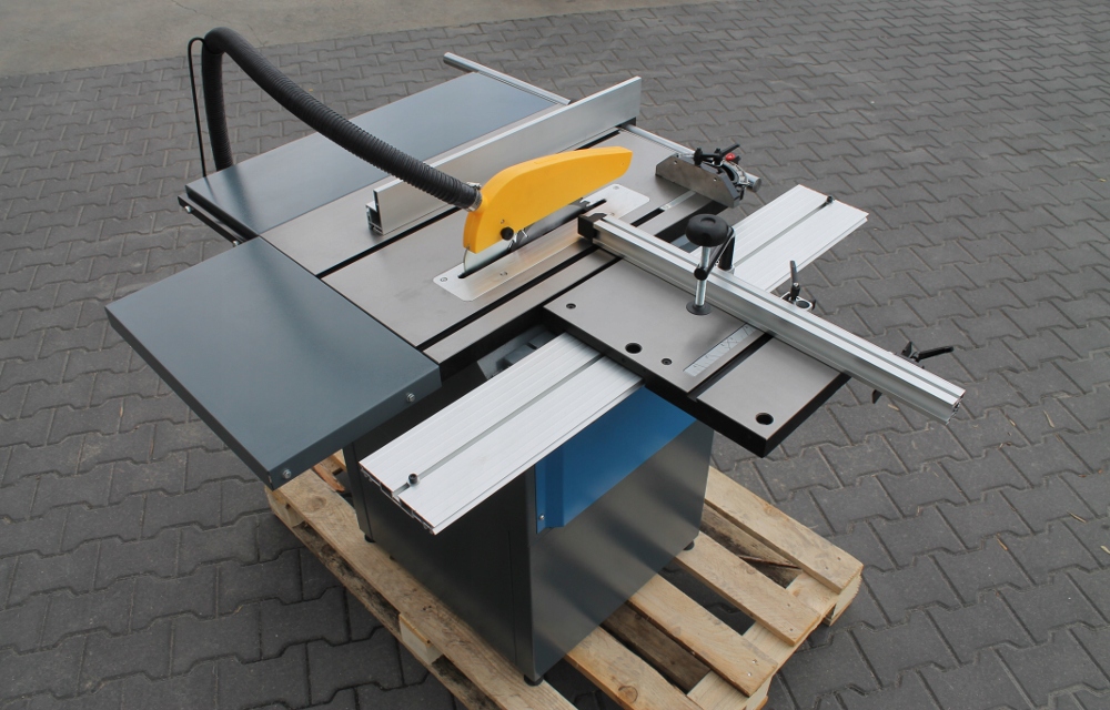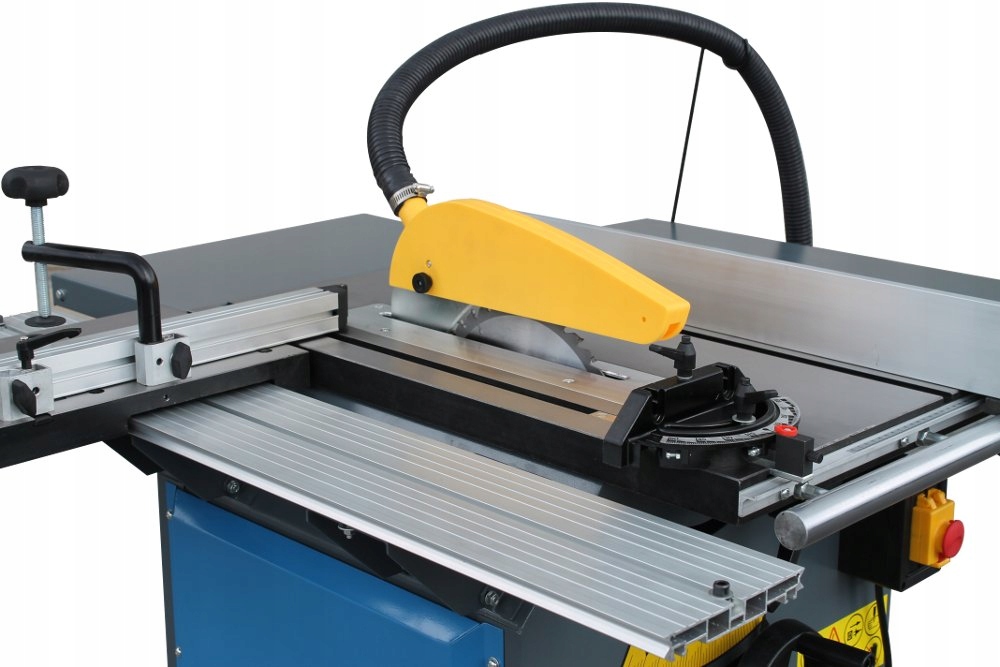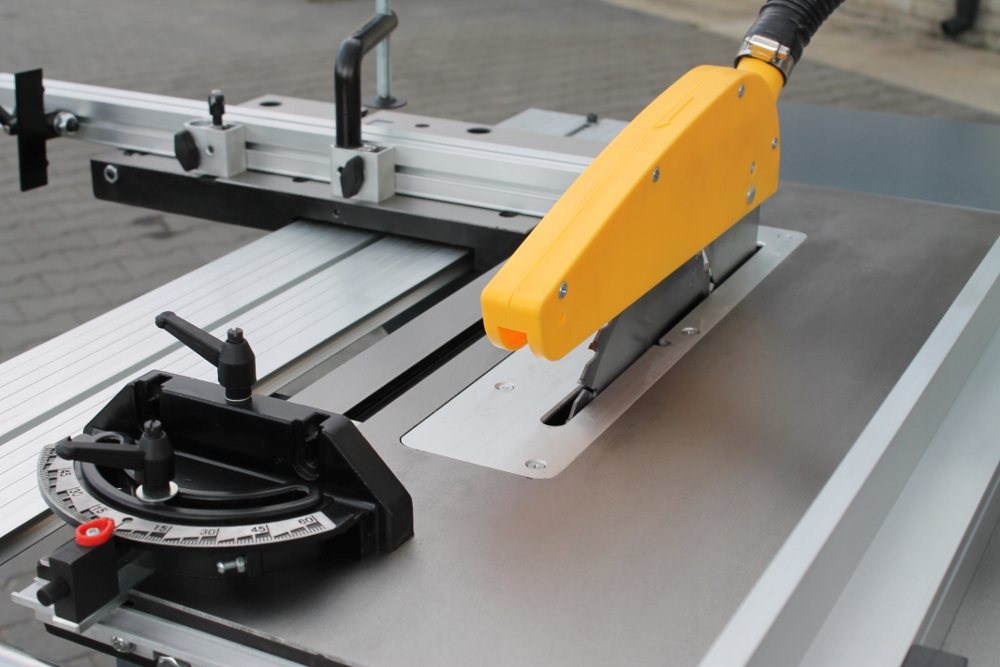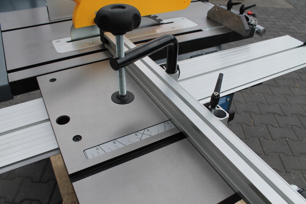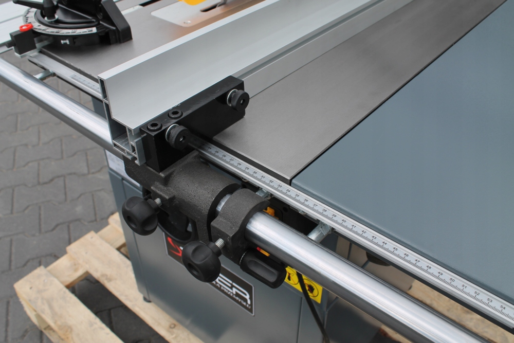 ✔️ masywne prowadnice z podziałkami, wzdłużna (stalowa) oraz kątowa jak i przedłużenie stołu w standardzie.
