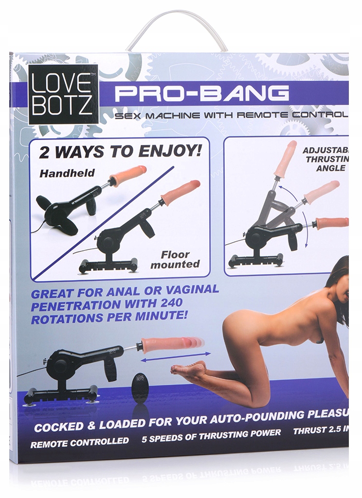 Ta maszyna do seksu Pro-Bang oferuje dwa ekscytujące sposoby gry! Ta maszyna oferuje potężne działanie pchające w lekkiej i przenośnej formie - można ją zamontować na płaskich, gładkich podłogach, aby dobrze się bawić solo lub ze swoim kochankiem.