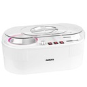 Dane techniczne: - moc 270W, - AC 230 V, - 50-60 Hz, - zakres temperatury 45-105 st. C, - wysokość: 13cm z pokrywką 16,5cm, - szerokość- 36cm, - długość: 18cm, - wymiary komory: - głębokość: 7cm, - średnica 10cm.