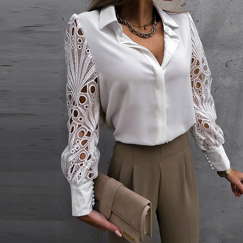 Модель Элегантная блузка женская рубашка декоративные рукава