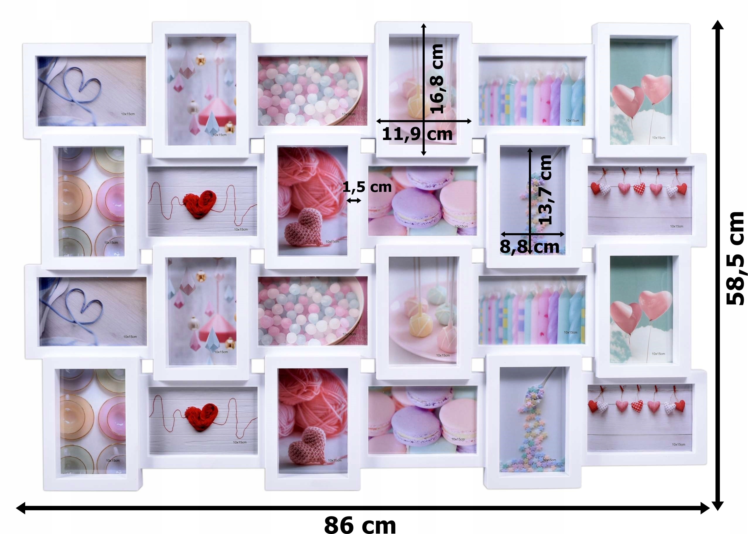 Ramka posiada 24 miejsca na zdjęcia o wymiarze 10x15 cm.