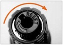 ➡️Przekręcamy czarny bęben maksymalnie w prawo jak pokazuje strzałka.