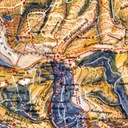 Stara mapa turystyczna Karkonoszy z lat 30. XX w., ze szlakami, schroniskami, wieżami widokowymi itp.