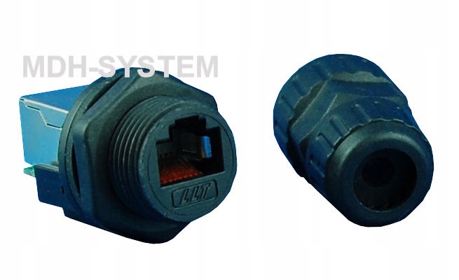 W zestawie z hermetyczną, przykręcaną do gniazda osłoną wtyku RJ45.