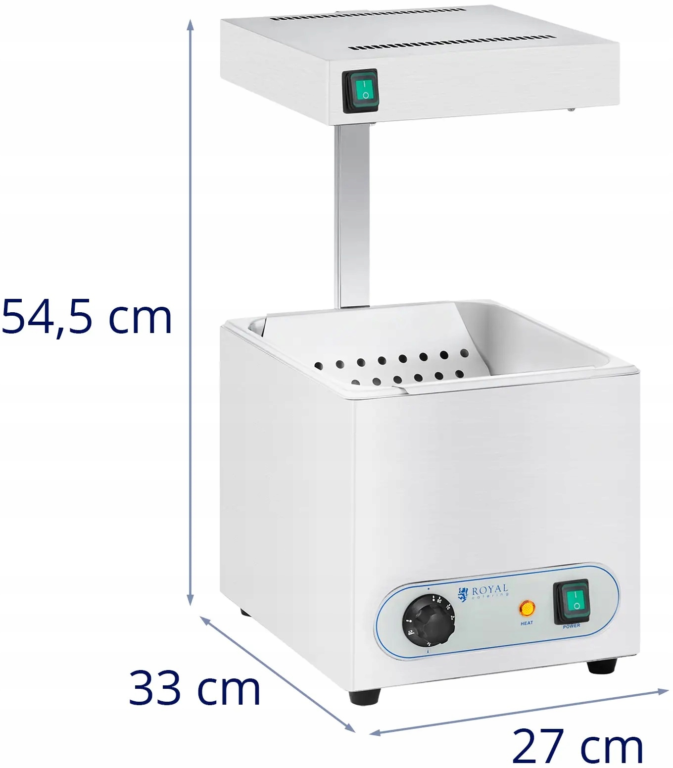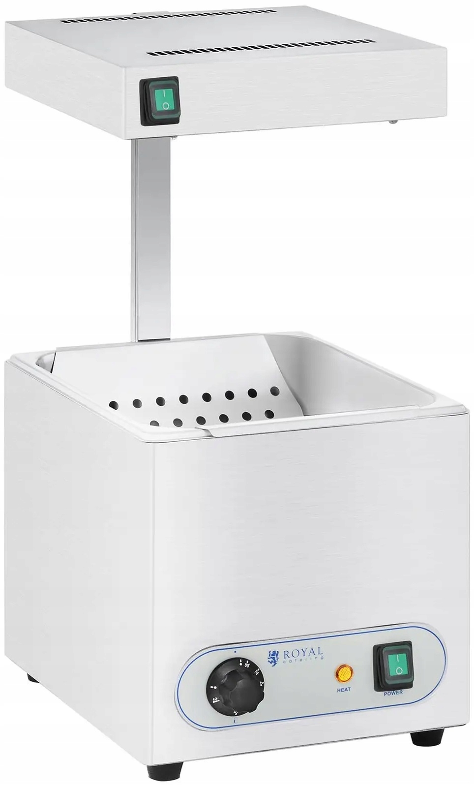 Nowoczesny i efektywny podgrzewacz do frytek z promiennikiem ciepła znajdzie zastosowanie w miejscach, gdzie zachodzi konieczność przechowywania produktów spożywczych w stałej gotowości do wydania. Dzięki przemyślanej budowie zarówno obsługa, jak i zapewnienie frytkom optymalnych warunków są bardzo łatwe. Marka Royal Catering zadbała o staranne wykonanie sprzętu, który charakteryzuje się wysokimi parametrami użytkowymi.