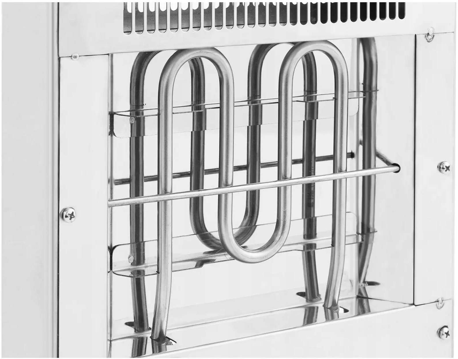 Wysokiej jakości obudowa została wykonana ze stali nierdzewnej. Ten ceniony w branży gastronomicznej materiał pozwala na długie, pomyślne użytkowanie wyprodukowanych z niej sprzętów. Cechuje się odpornością na korozję, mechaniczne uszkodzenia oraz posiada dekoracyjny połysk. Dodatkowo jest neutralny w kontakcie z żywnością, a więc zupełnie bezpieczny dla zdrowia. Gładką powierzchnię stali łatwo utrzymać w higienicznej czystości.