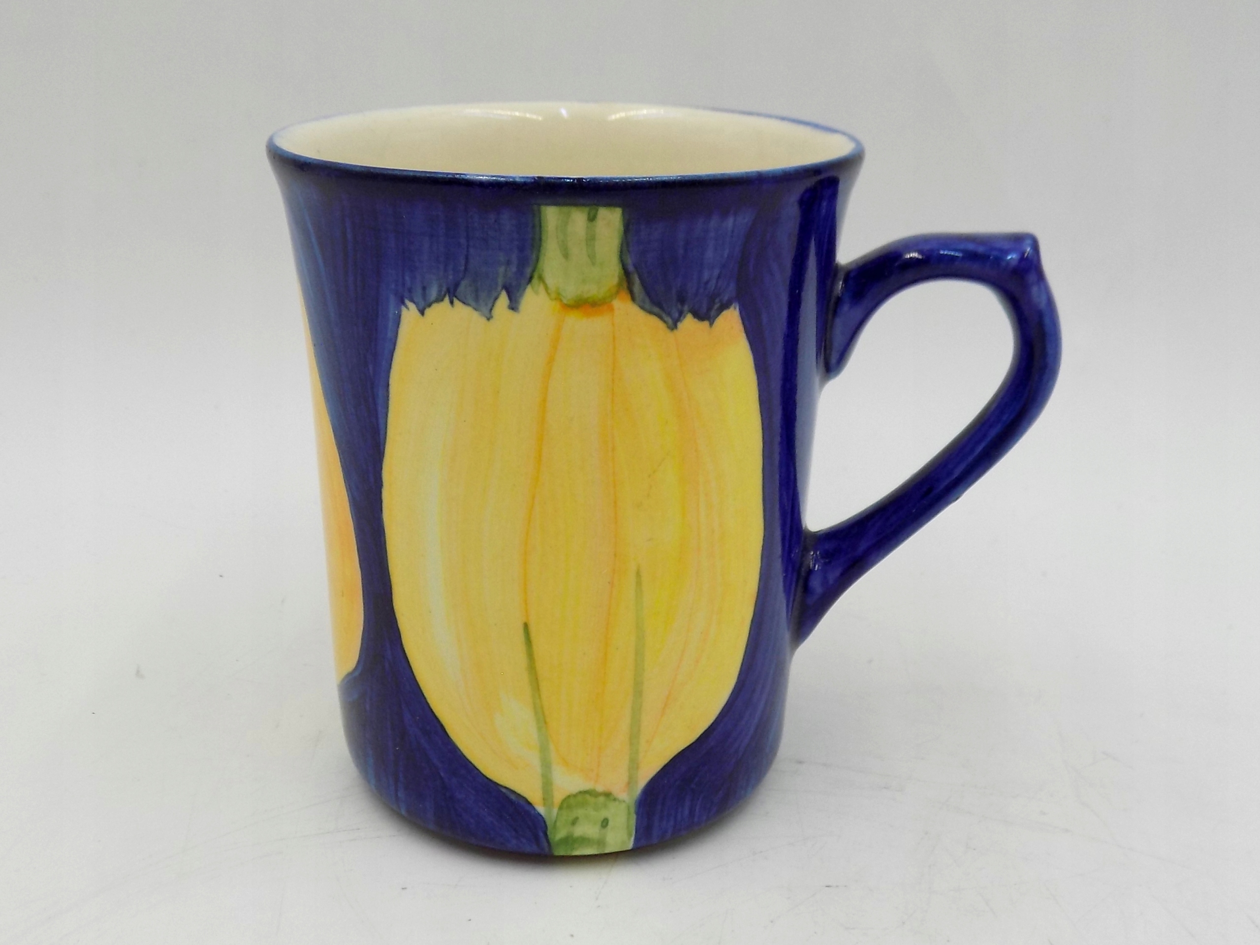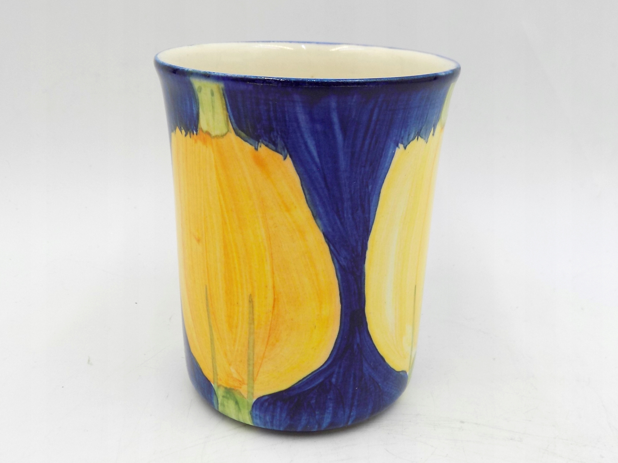 Kubek fajansowy Birko z Kościerzyny. Sygnowany. Wymiary; wys. 10 x 11 x 8,5 cm.