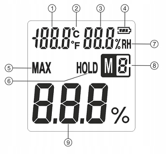 Диапазон измерения влажности 2~70 %