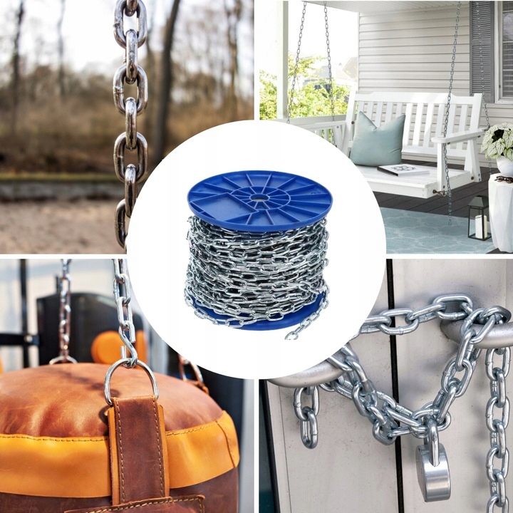 Łańcuch ogniwo krótkie oc. D1 10mm DIN5685A rolka można wykorzystać do różnych celów. Jest idealny do podwieszania barierek, reklam, lamp lub doniczek. Jednak nie zaleca się używania go do transportu ładunków. Dzięki swojej uniwersalności łańcuch ten może być również używany do odgradzania przestrzeni lub jako element przydomowych huśtawek.