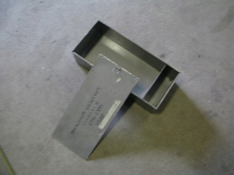 Opis: stan db,u żywana, wykonanie z metalu, wnętrze z przegrodą, wym. wewnętrzne41x18x12,5cm