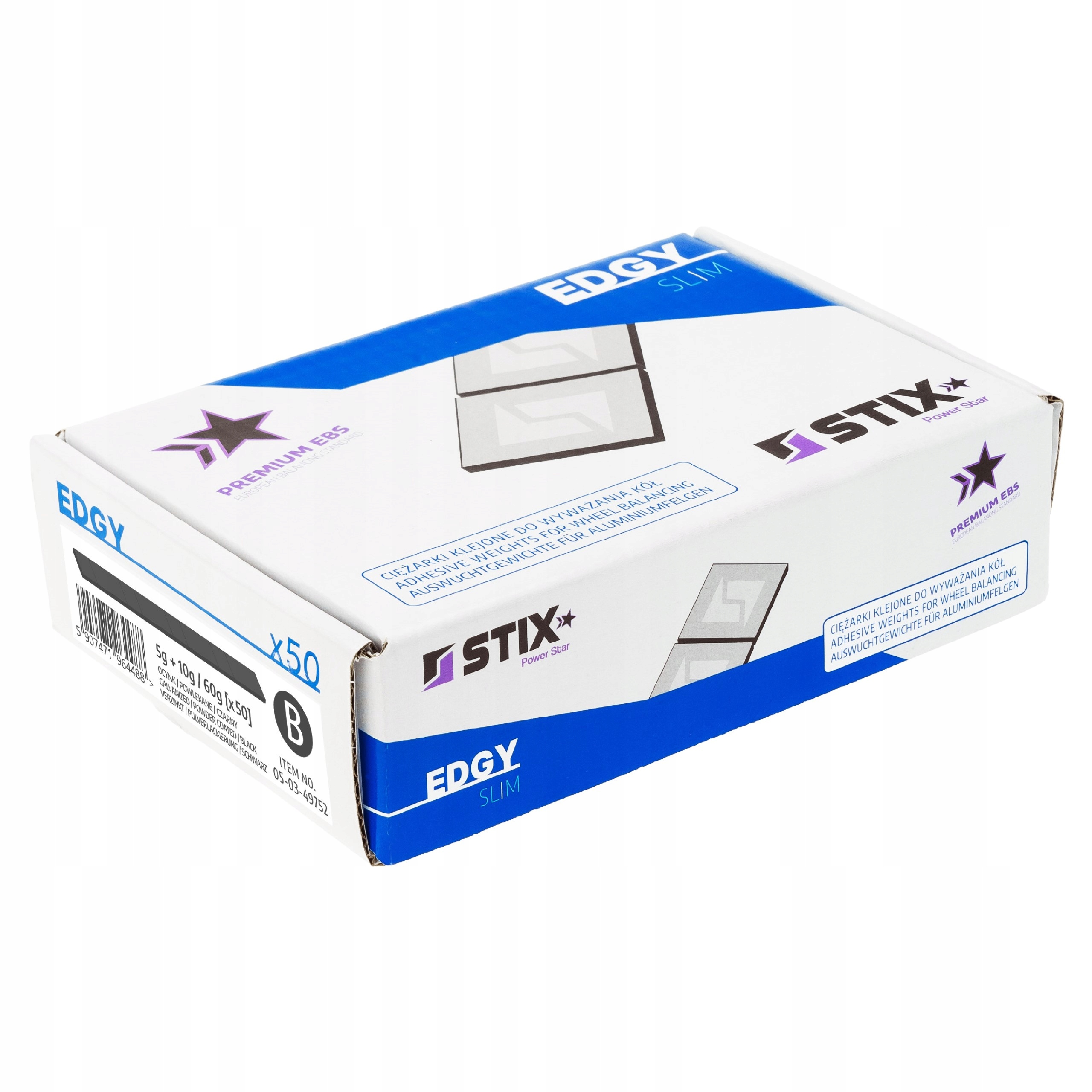 Powierzchnia ciężarków klejonych Edgy Slim Black oprócz czarnej powłoki zabezpieczona jest także powłoką cynkową. Ciężarki sygnowane są marką Stix, która zapewnia serwisom oponiarskim szeroki wybór materiałów wulkanizacyjnych i narzędzi do serwisu kół.