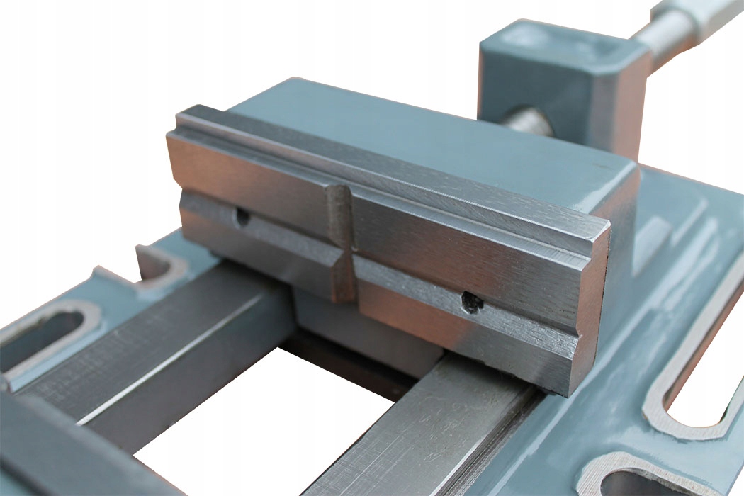 Тиски машины изготовлены из чугуна с гладкими, закаленными и шлифованными челюстями.