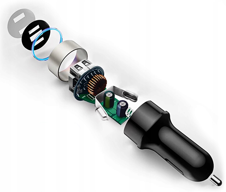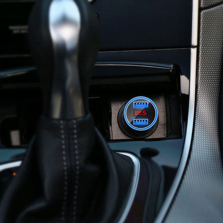 Kompaktowy rozmiar ułatwia umieszczenie ładowarki w zapalniczce samochodowej. Z przodu urządzenia znajduje się wskaźnik napięcia.