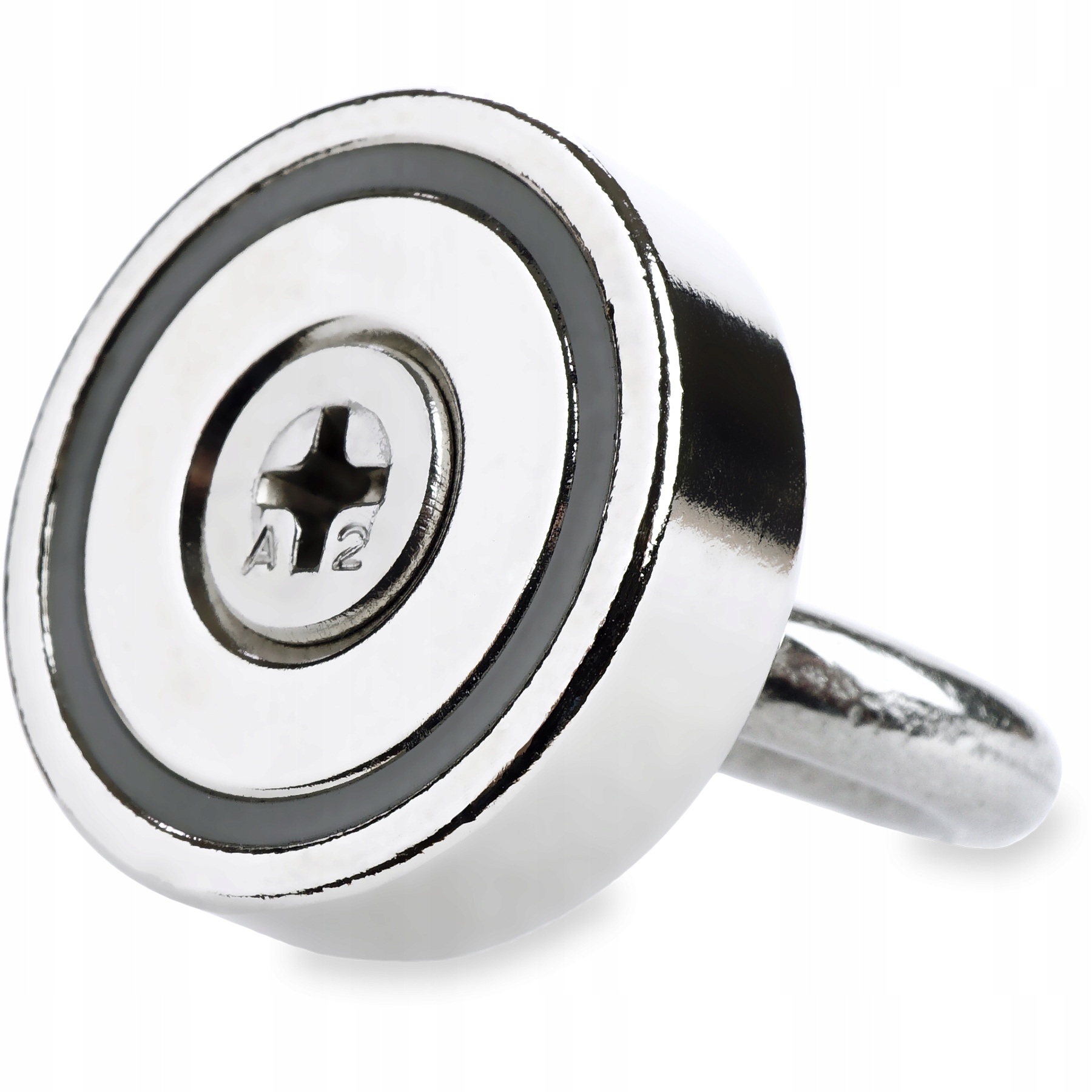 Rdzeń magnesu powstał ze spieku neodymu, żelaza i boru NdFeB (neodym-żelazo-bor) klasy N52. Rdzeń osłonięty został obudową stalową. Odkręcany uchwyt oraz śrobę wykonano ze stali nierdzewnej klasy 304.