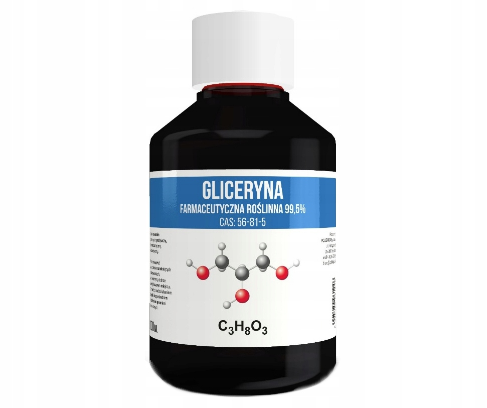 Gliceryna roślinna 99,5 % farmaceutyczna C3H8O3 - jest otrzymywana z tłuszczów pochodzenia roślinnego i zwierzęcego. Znajduje się w niektórych owocach i warzywach. Glicerol jest bardzo higroskopijny i miesza się z wodą w każdym stosunku. Dzięki silnie higroskopijnym właściwościom gliceryna ułatwia wchłanianie kosmetyków, a tym samym przyśpiesza ich działanie. Gliceryna ma silne właściwości nawilżające skórę dlatego stosowana jest do produkcji kremów, pomadek, mydeł oraz innych kosmetyków zmywalnych.