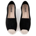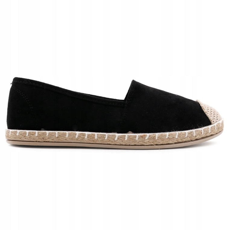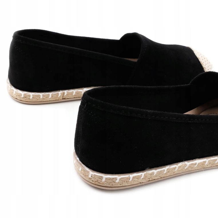 Espadryle damskie na płaskiej podeszwie ozdobionej dookoła warkoczem z juty. Niska cholewka wykonana z ekozamszu, wsuwane. Z okrągłym noskiem ozdobionym delikatną plecionką. To idealne buty na lato.