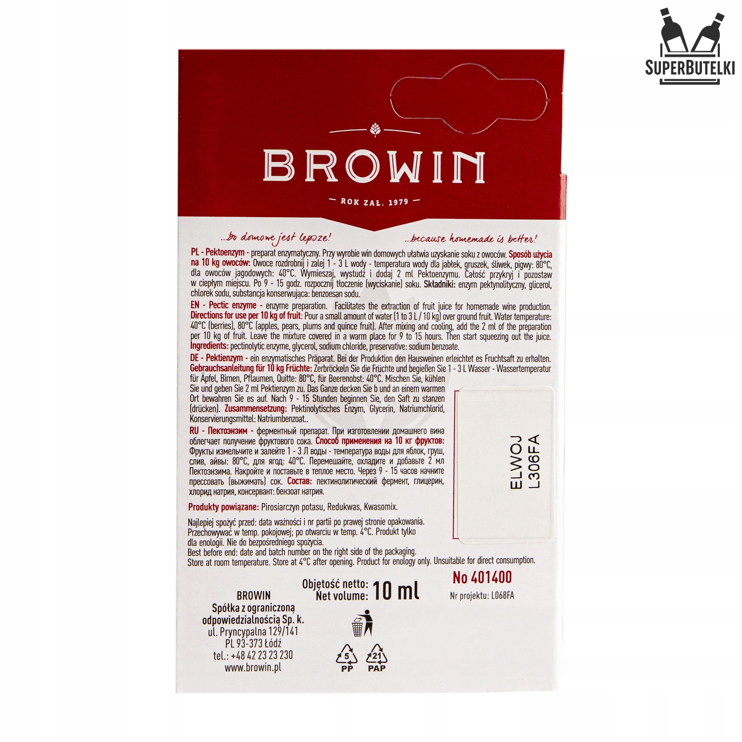 Składniki: enzym pektynolityczny, glicerol, chlorek sodu, substancja konserwująca: benzoesan sodu.
