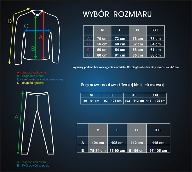 wygoda noszenia uzyskana poprzez dopasowany i ergonomiczny krój, bielizna dobrze przylega do ciała, jednocześnie zapewnia pełną swobodę ruchów, wydłużony tył to pewne trzymanie się koszulki w czasie aktywności ruchowej