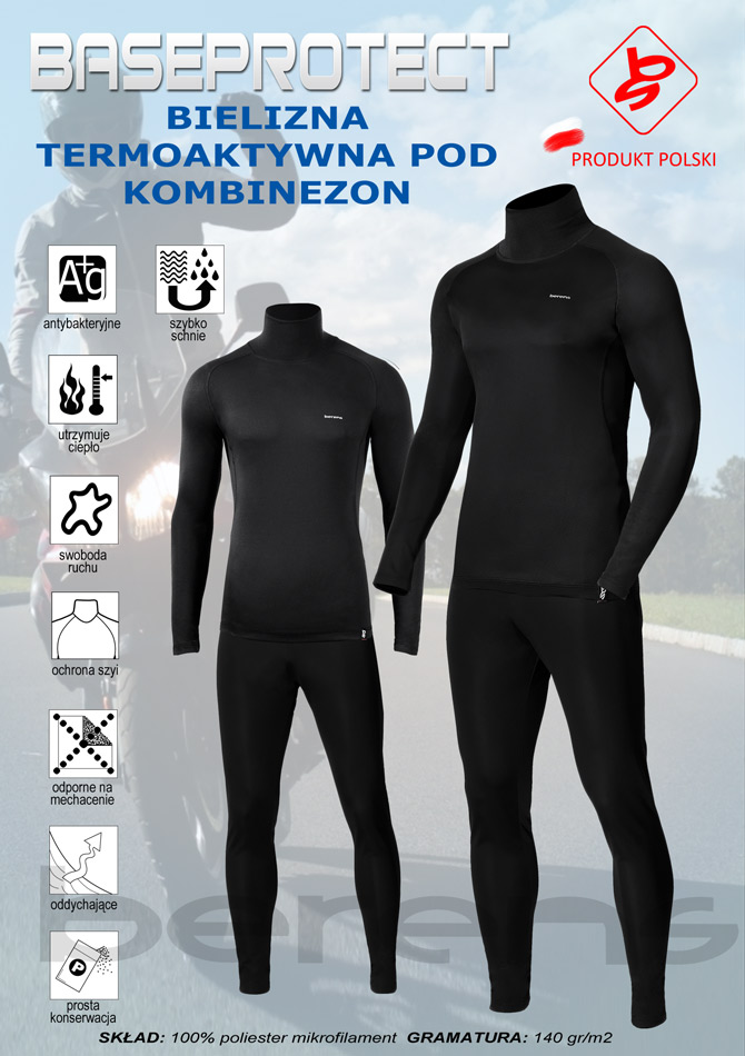 Bielizna termoaktywna BERENS z serii Baseprotect niezwykle szybko pochłania wilgoć z powierzchni ciała i przekazuje ją dalej, dzięki czemu skóra pozostaje sucha, zapewnia jej odpowiedni mikroklimat.