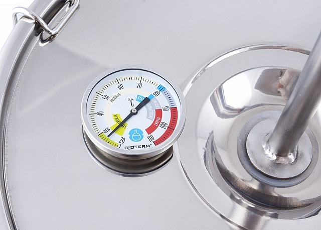 1. Garnek po zainstalowaniu rurki fermentacyjnej może służyć do fermentacji zacieru, cukrówki, wina - dzięki termometrowi mamy kontrolę temperatury.