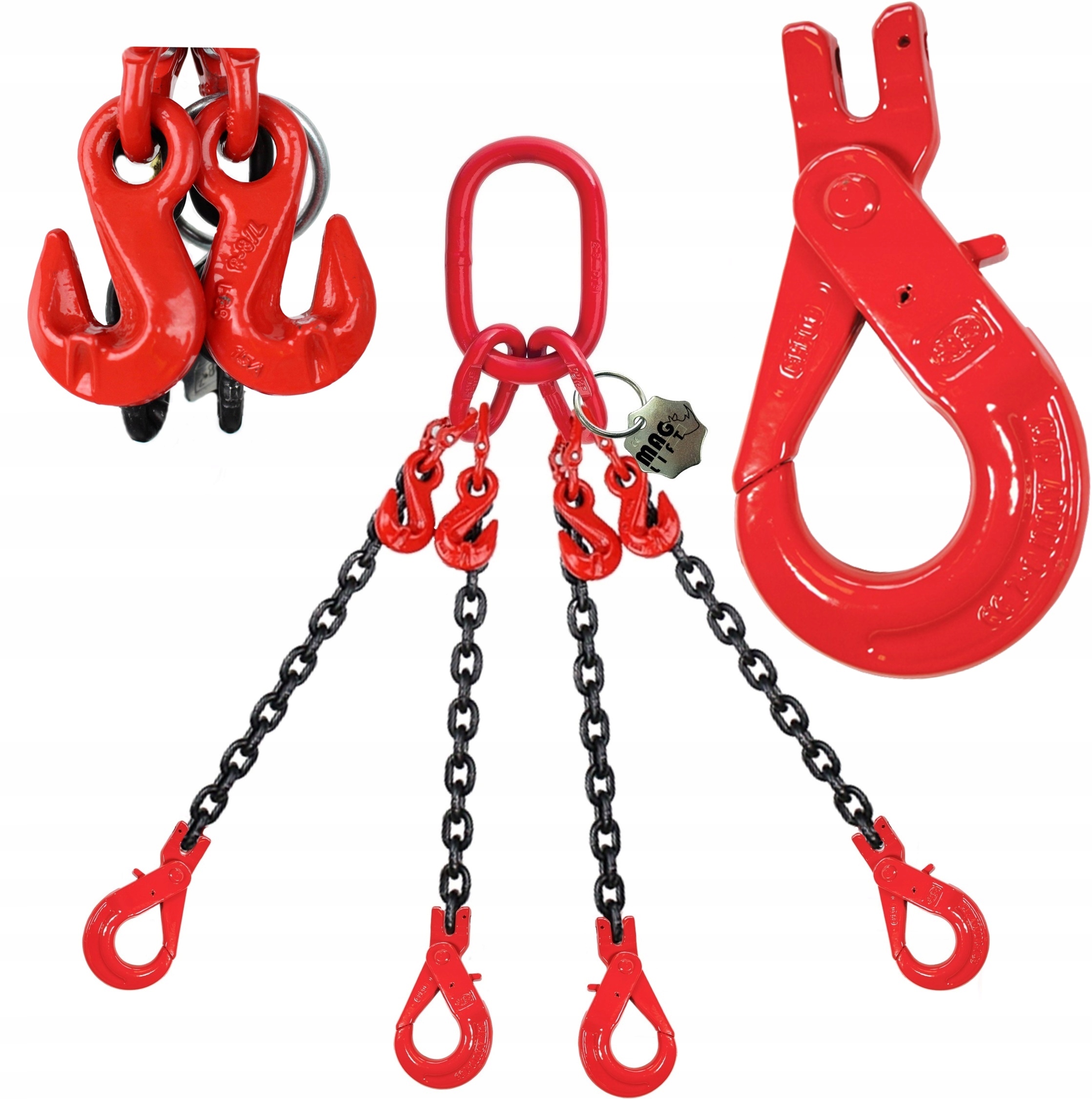 WYKONANIE: zawiesie łańcuchowe 4-cięgnowe wyprodukowanie wg PN-EN 818-4 z atestowanych komponentów i łańcucha zawiesiowego o wytrzymałości na rozciąganie 800 N/mm2 / GR8 / i spełniające wymagania Dyrektywy Maszynowej 2006/42/WE wyd. maj 2006.