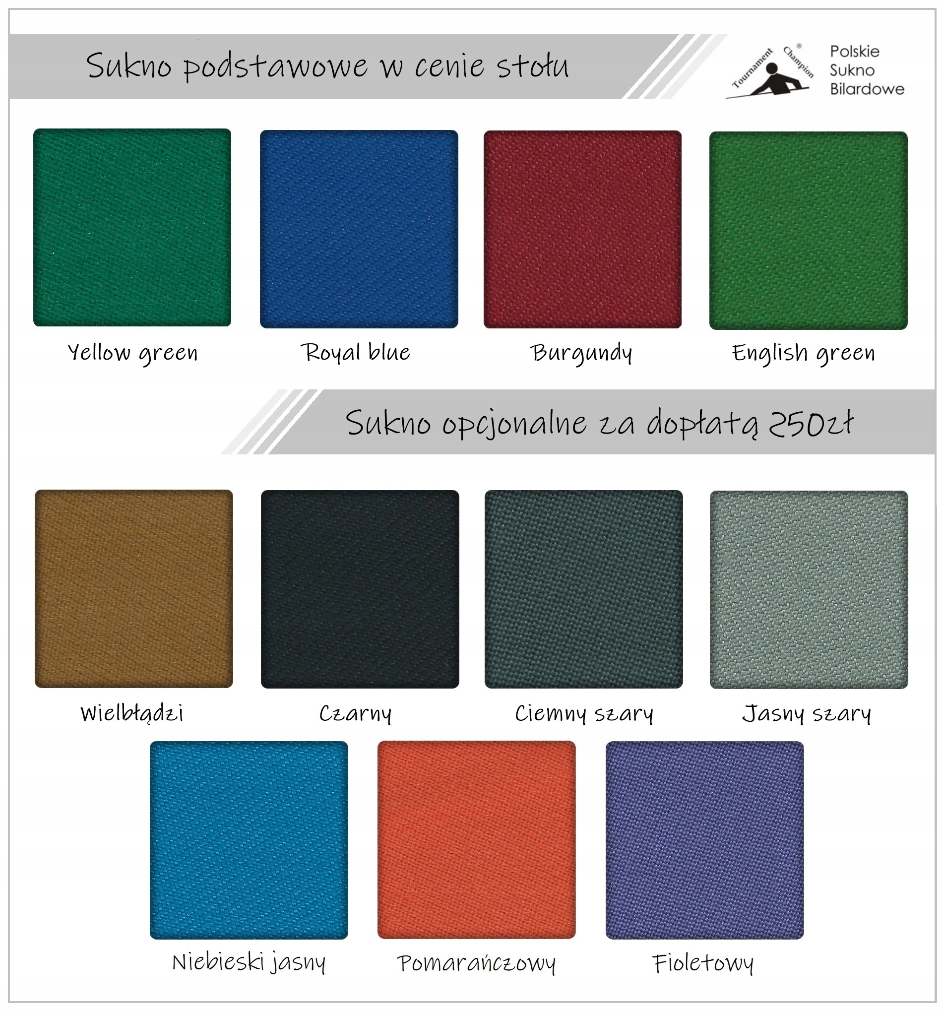 W celu zapewnienia najwyższej jakości naszych usług, dla naszych klientów wprowadziliśmy opcję samodzielnego wyboru sukna i kolor stołu.