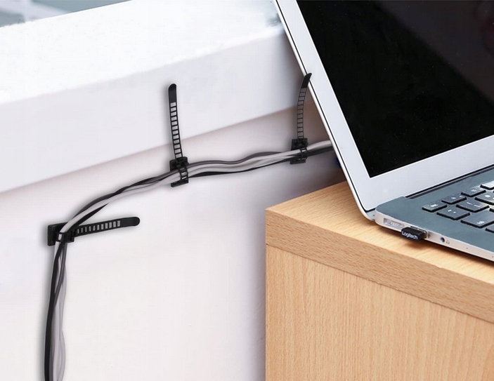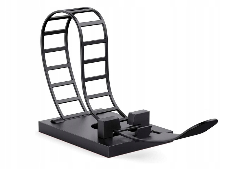 Organizer do kabli to niepozorne, ale bardzo praktyczne rozwiązanie, które rozwiąże problem poplątanych kabli. Za pomocą mocnej taśmy 3M przymocujesz go do większości gładkich i równych powierzchni, np. w samochodzie, na biurku lub koło telewizora. Uchwyt posiada opaskę zaciskową wielokrotnego użytku dzięki, której w dowolnym momencie można zmienić ilość zamocowanych kabli.