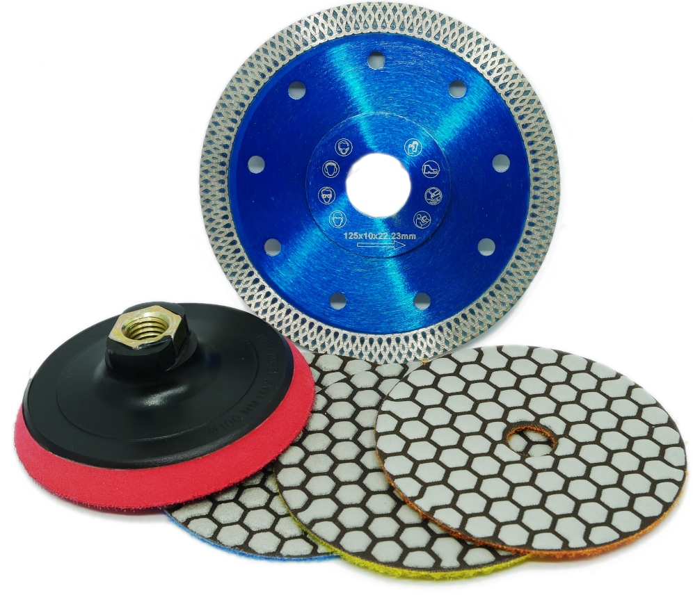 Zestaw tarcz diamentowych do cięcia (125mm) i szlifowania krawędzi (100mm) gresu, ceramiki i spieków.