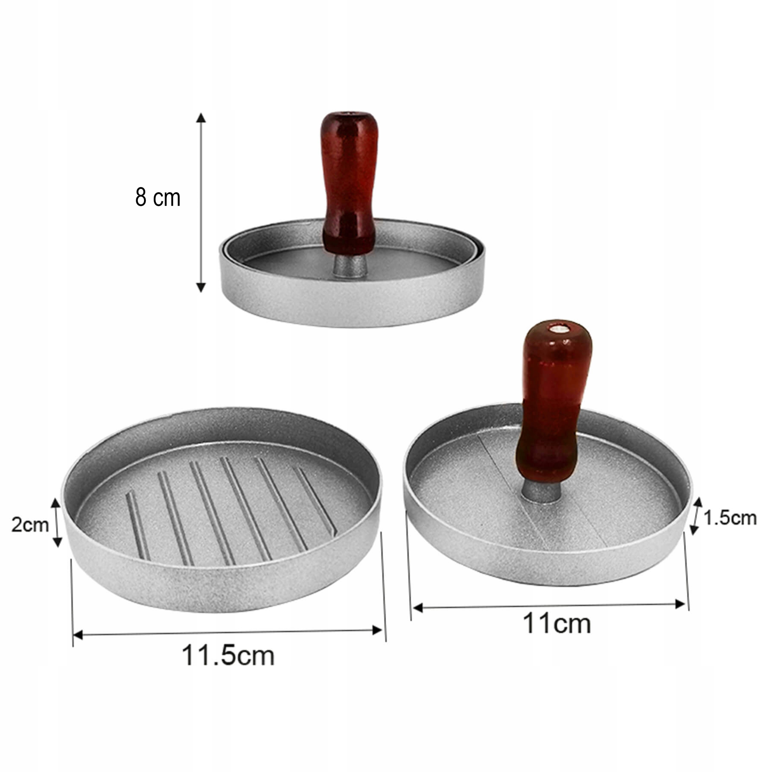 Średnica wewnętrzna prasy wynosząca 11,5 cm i wysokość formy 2 cm stworzy idealne porcje burgerów pod względem kształtu, wielkości oraz wagi. Jest to idealny rozmiar pasujący do standardowych bułek hamburgerowych. Dzięki swoim zgrabnym gabarytom daje nam możliwość łatwego przechowywania prasy np. w szufladzie, dzięki czemu zajmuje mało miejsca w kuchni. Odpowiedni rozmiar daje nam możliwość łatwego transportowania prasy na wspólnego grilla u znajomych.