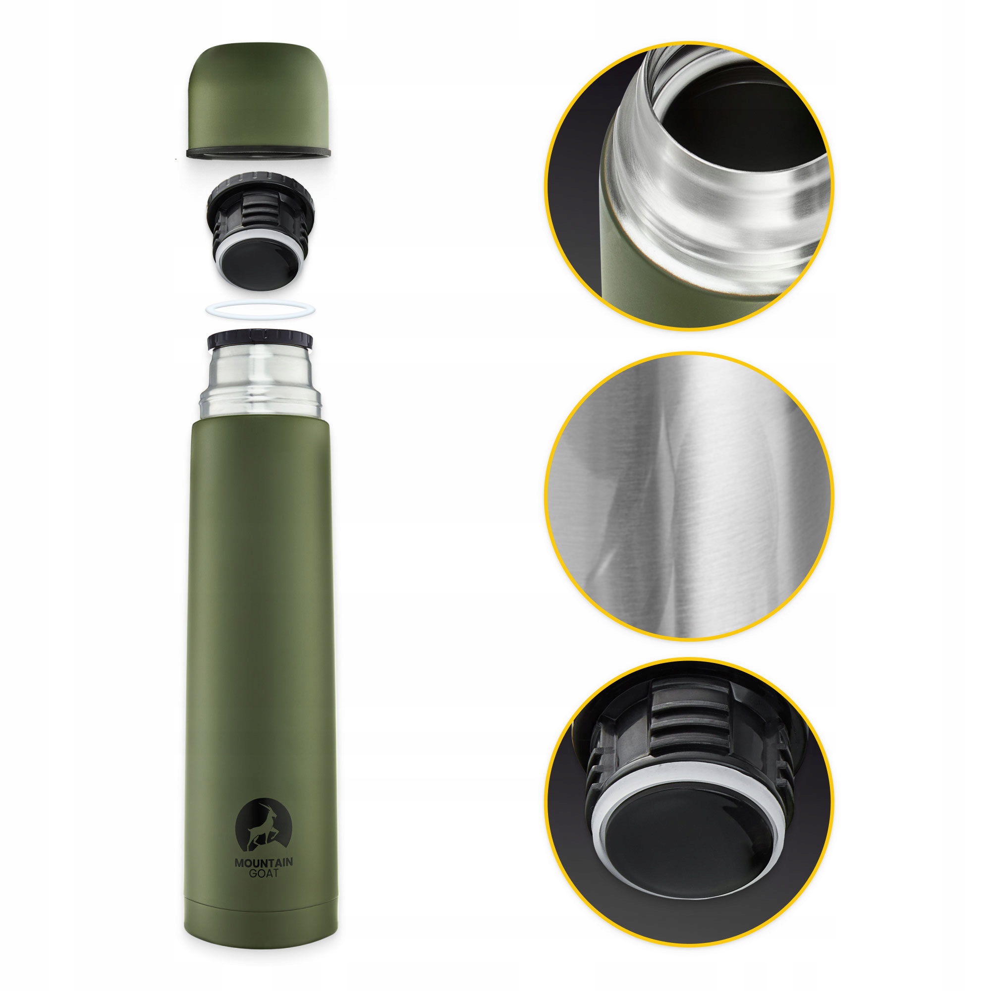 Туристический вакуумный термос MOUNTAIN GOAT с двойными стенками Благодаря этому вы достигнете чашки горячего напитка даже после нескольких часов походов высоко в горы. И это просто типичное удовольствие-ваш любимый горячий кофе на вершине с прекрасный вид!